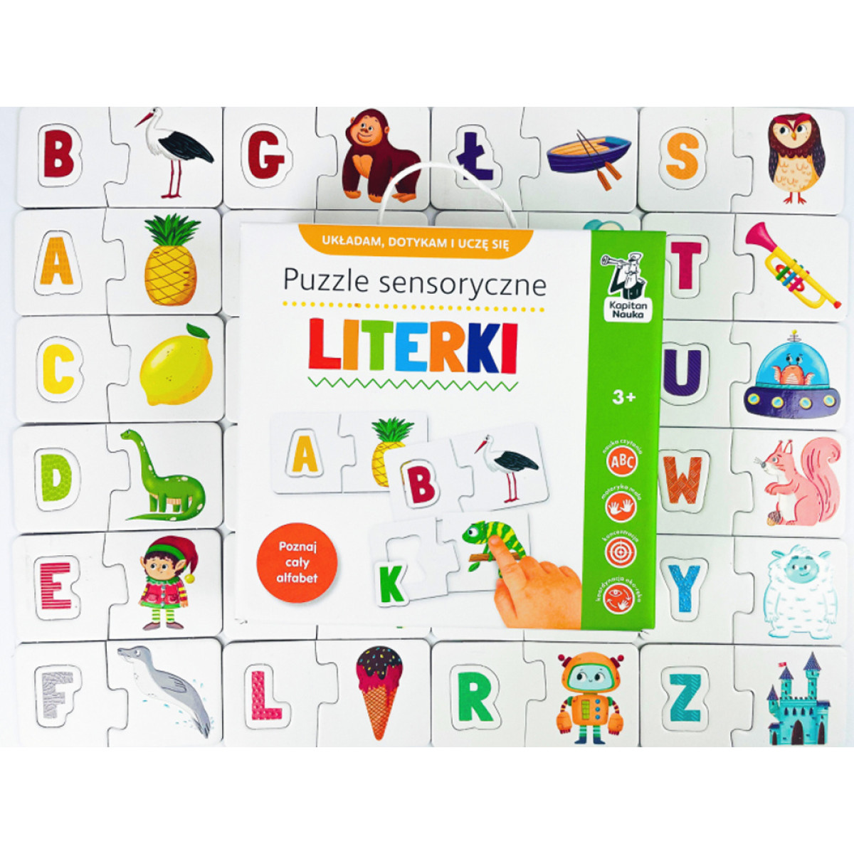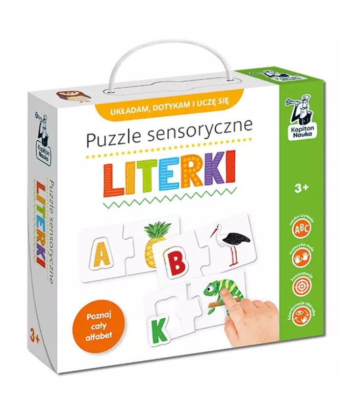 Susipažink su abėcėle lytėjimo būdu! Kapitonas Mokslas Sensoriniai Dėlionės yra nuostabi edukacinė priemonė mažiesiems. Šių dėlionės dėka vaikai mokosi raidžių, lavina pastabumą ir vysto lytėjimo pojūtį - ir visa tai per smagų žaidimą!