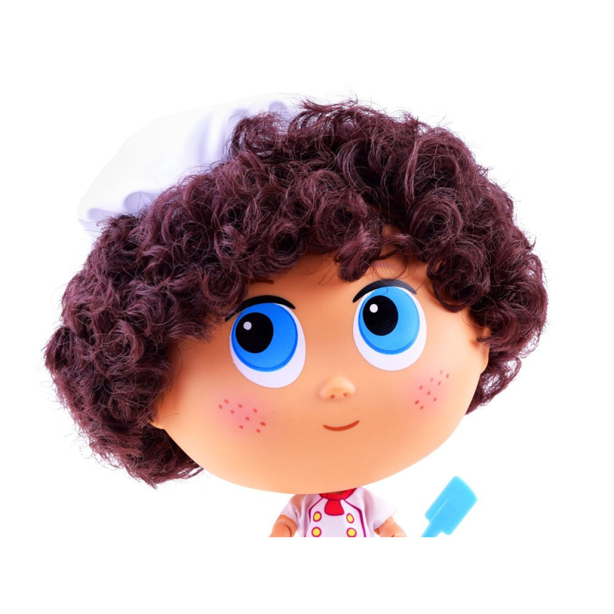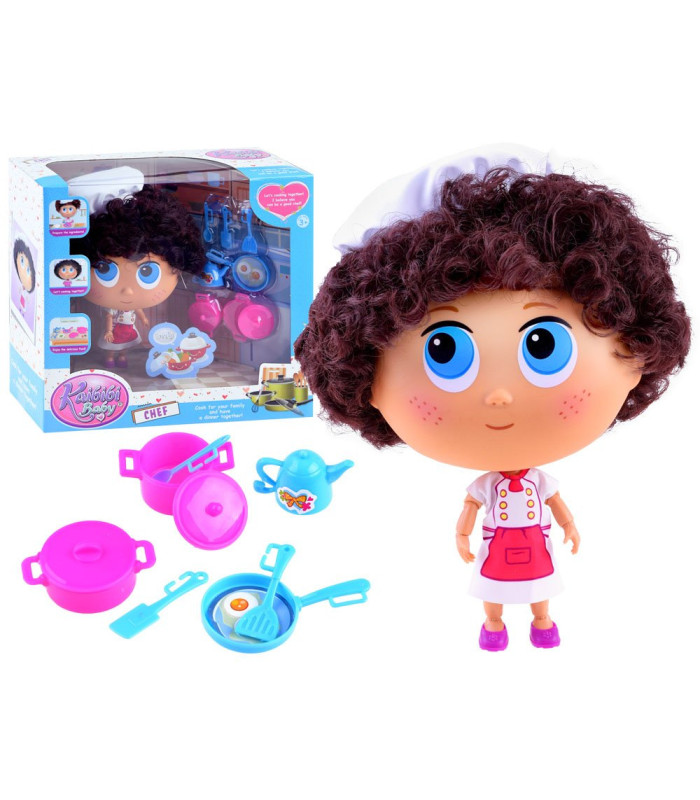 Unikali lėlė virėjo kostiumu - puiki idėja žaidimui. Lėlė pagaminta iš plastiko su nuostabiais ilgais plaukais. Lėlė turi judančias visas galūnes, lankstosi sąnariuose, riešuose, alkūnėse, keliuose ir čiurnos sąnaryje. Galva sukasi 360 laipsnių kampu. Apranga - virėjo prijuostė, rausvi bateliai, virėjo kepurė. Ant veido nupieštos didelės akys, žavios strazdanos ir šypsena. Prie lėlės pridedamas puodų rinkinys, keptuvė ir virtuvės reikmenys. Su šia lėle kiekvienas žaidimas bus grynas malonumas.
