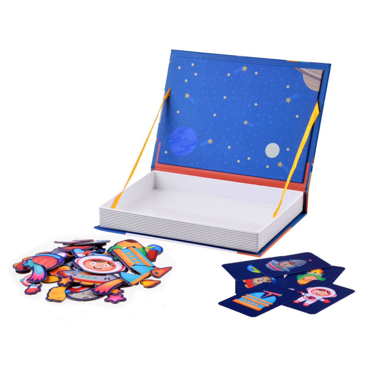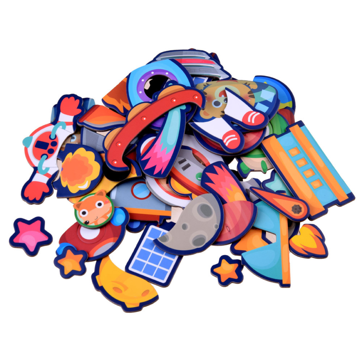 Magnetinė dėlionė yra rinkinys, kurį sudaro 50 elementų su kosmoso tema. Ši dėlionė su astronautu ir jo aksesuarais yra puikus žaidimas vaikams, mėgstantiems kosmoso tematiką. Privalumai: