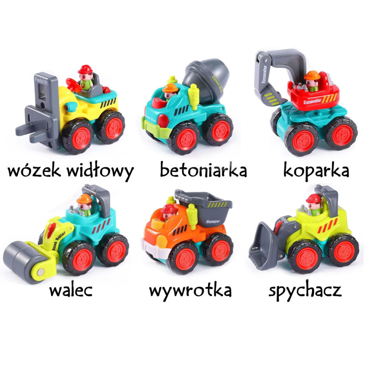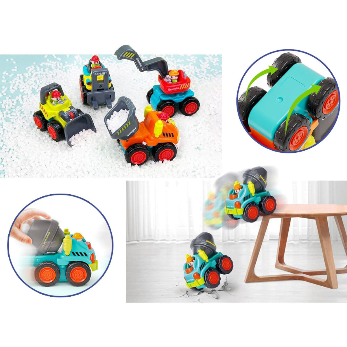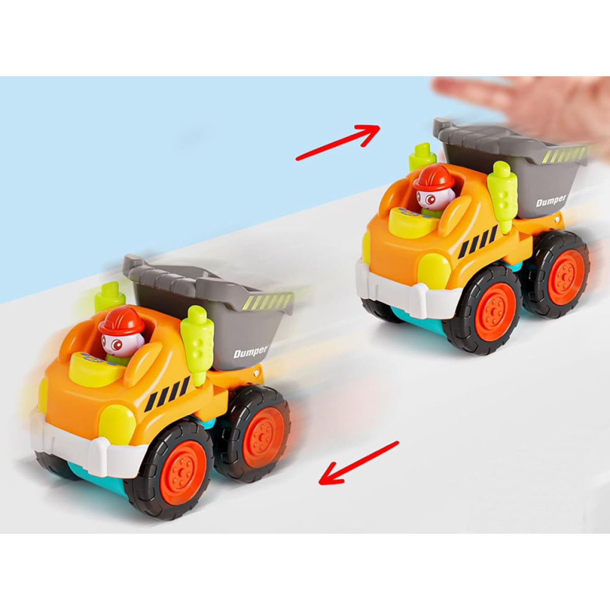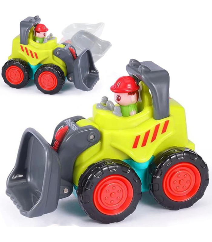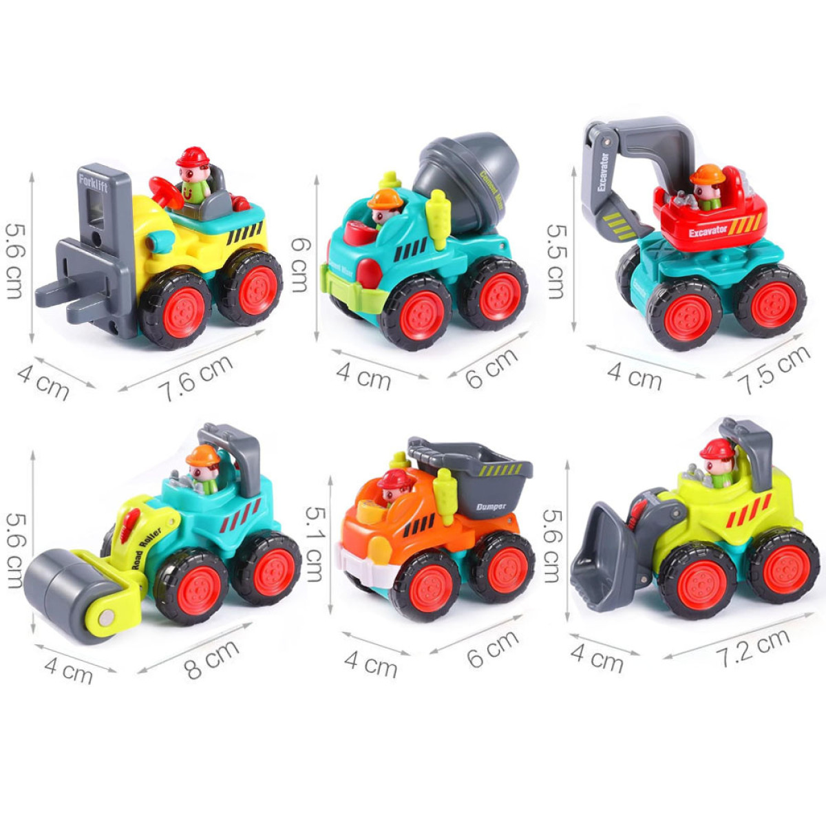 Statybinis žaislinis automobilis: ekskavatorius, krautuvas, volas, buldozeris, betono maišyklė arba savivartis