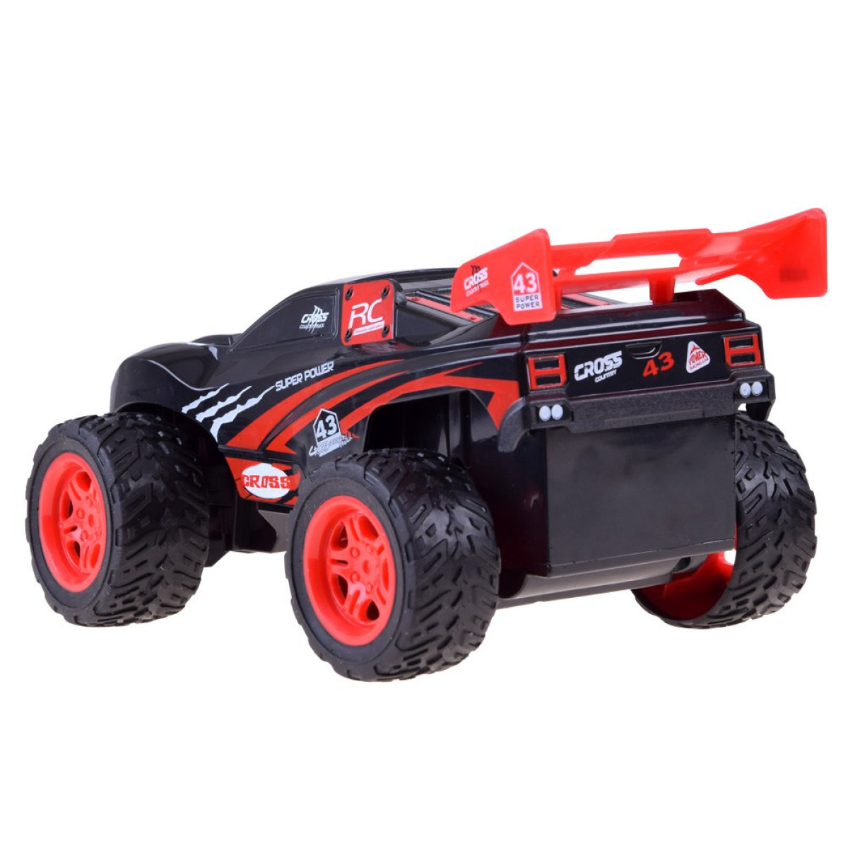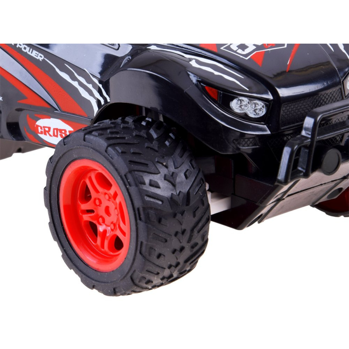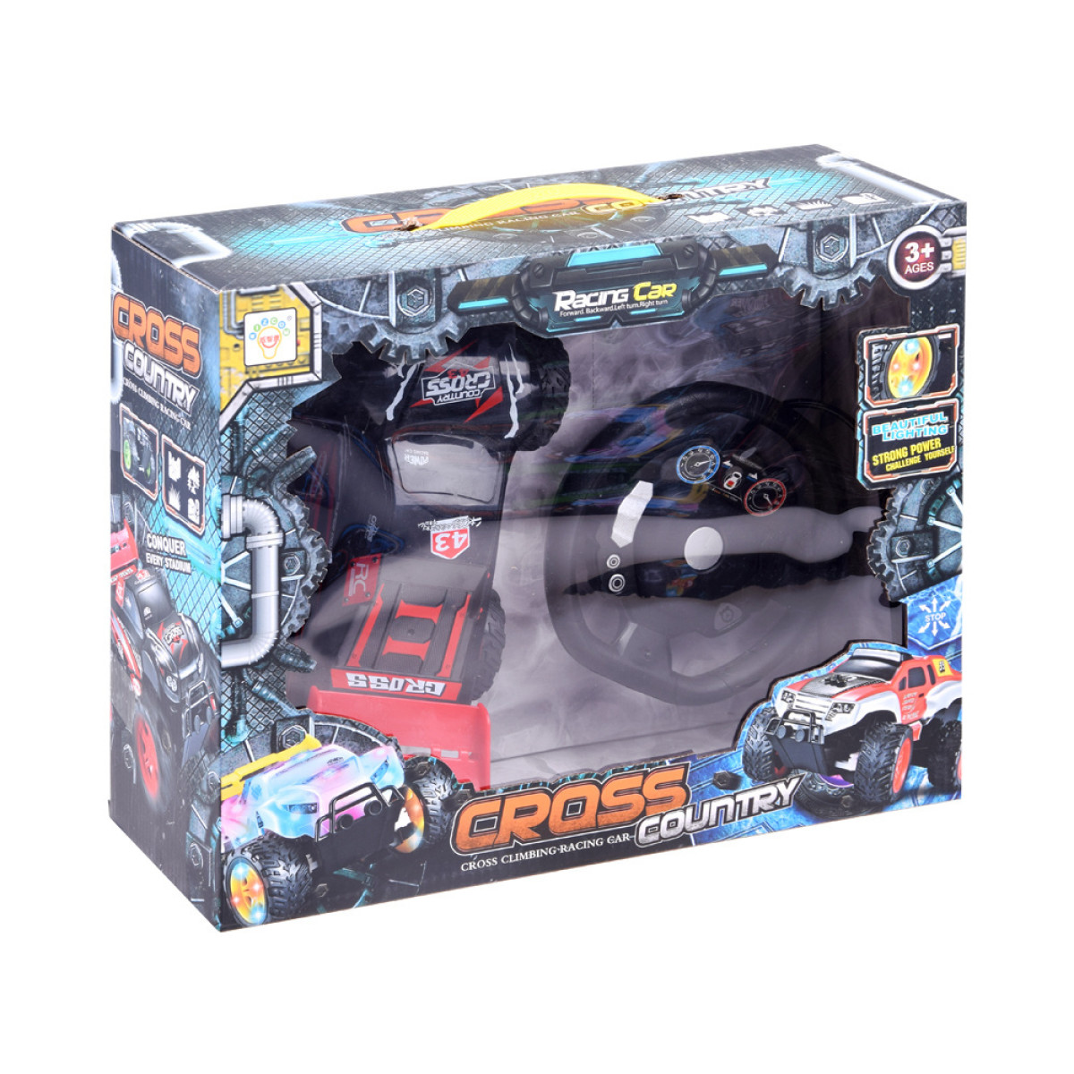 Cross Country automobilis yra su gumos padangomis ir aukštu važiuokle, pagamintas iš plastiko, todėl lengvai įveiks kambarinių trasa.