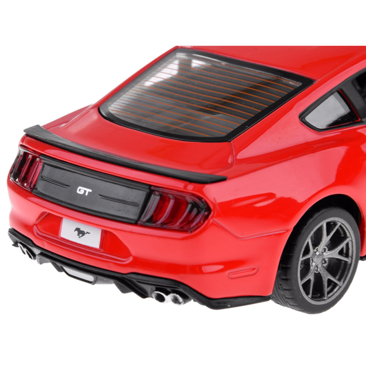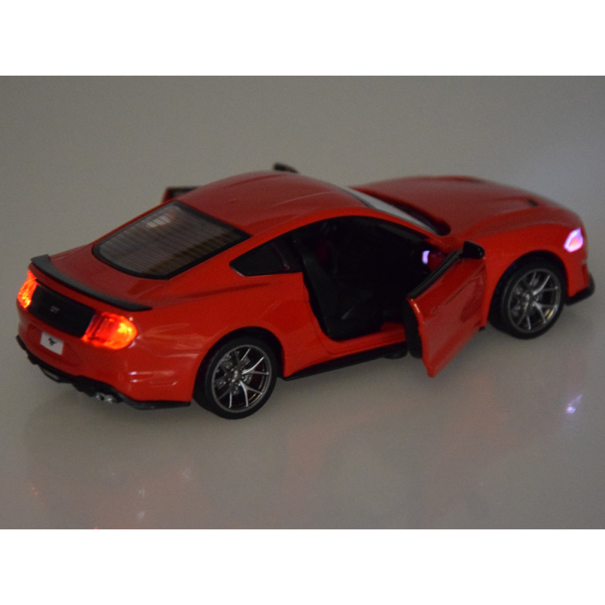 Atidarius žaislo Ford Mustang GT duris, išgirsite garso signalo ir aliarmo garsus. Paspaudus automobilį prie grindų, įsijungia variklio užvedimo ir veikimo garsai, lydimi priekinių ir galinių žibintų šviesos efektų. Visa automobilio kėbulo dalis yra metalinė, ratai - guminiai, važiuoklė - plastikinė.