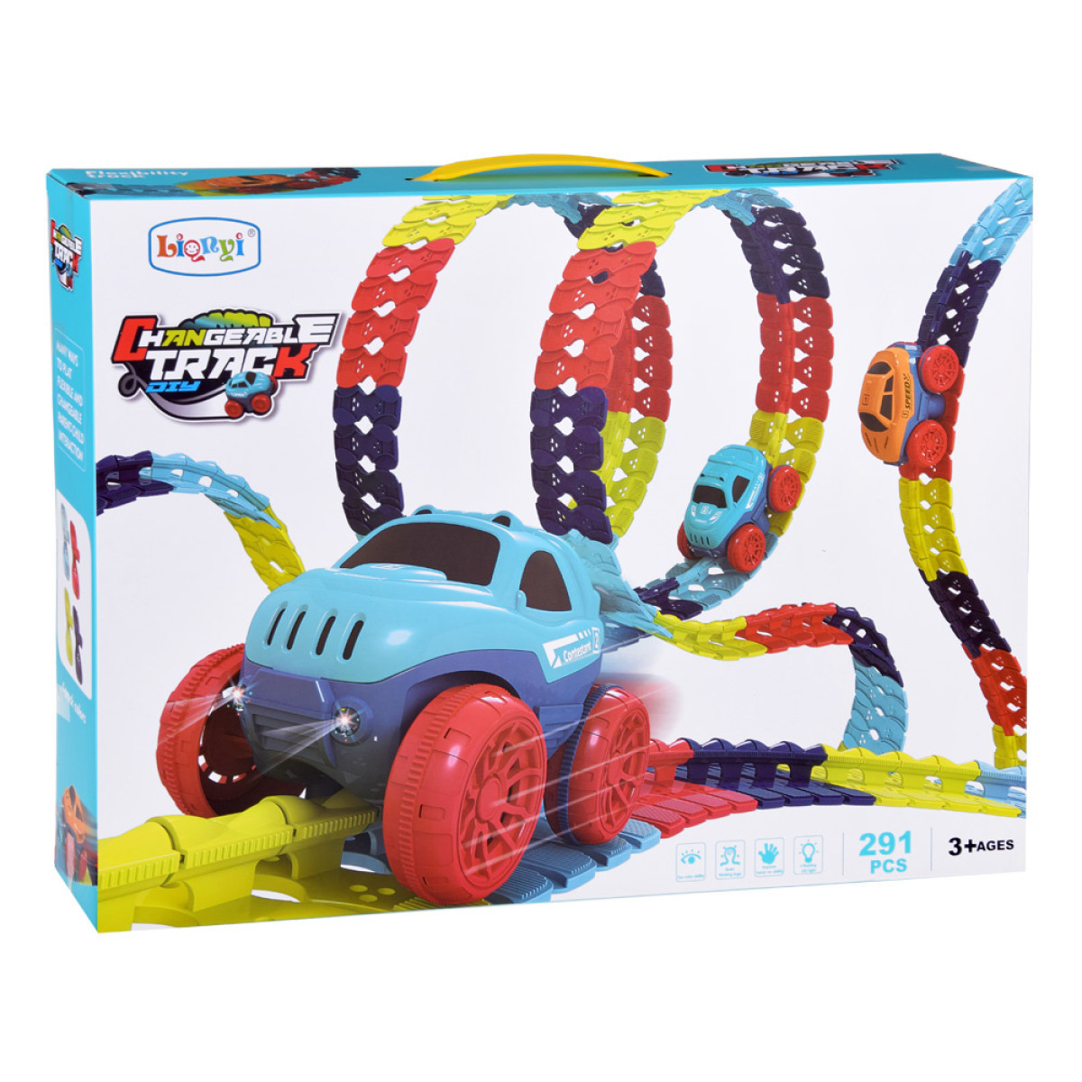 Ilgas lankstus automobilių trasa su automobiliu 291 elementu