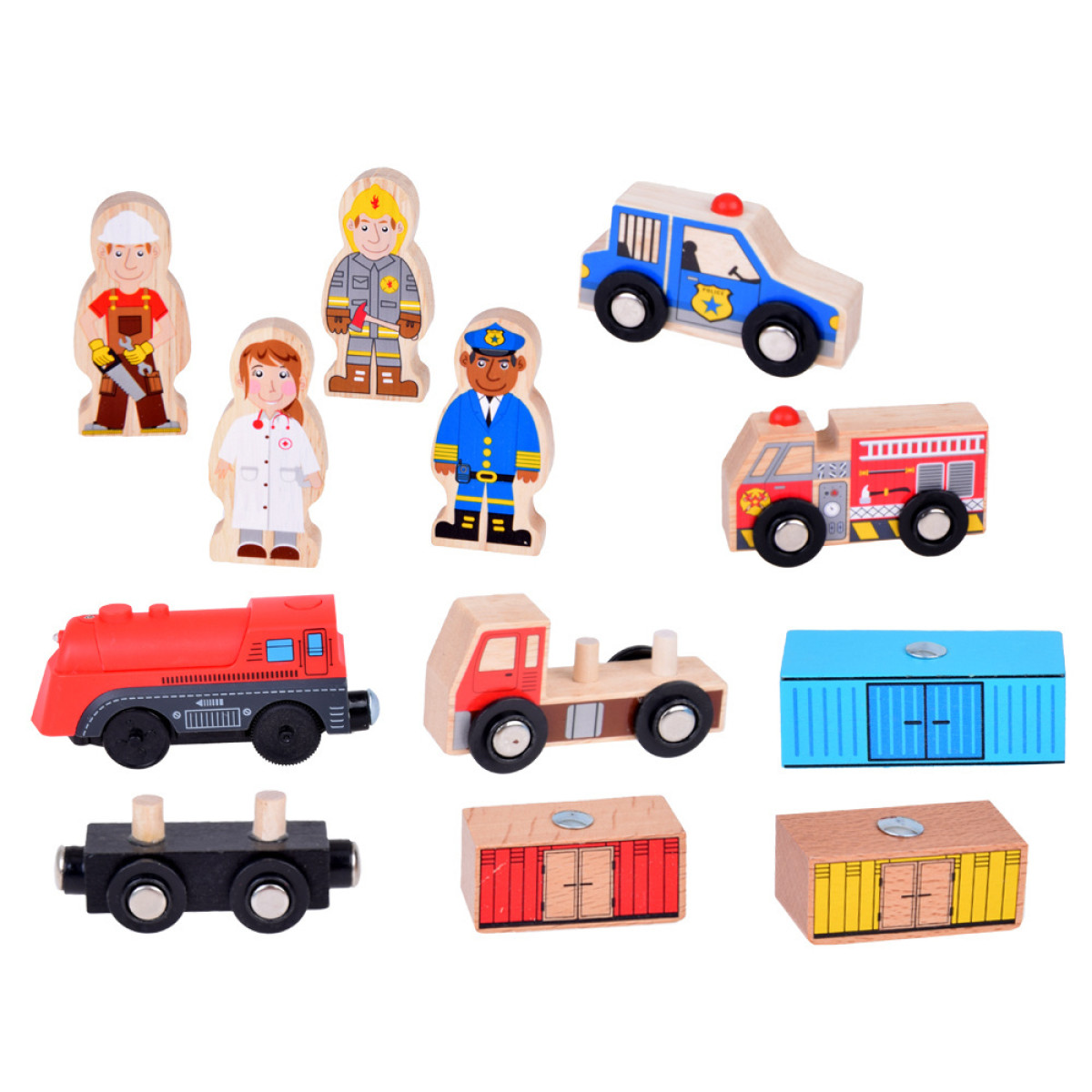 Medinė traukinio rinkinys su blokeliais - Sukurkite savo miestą