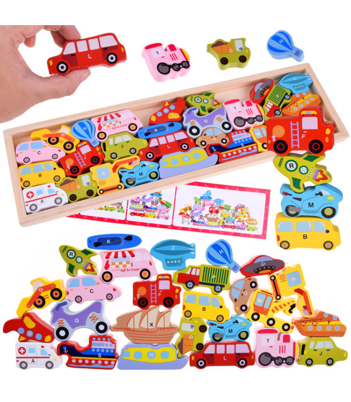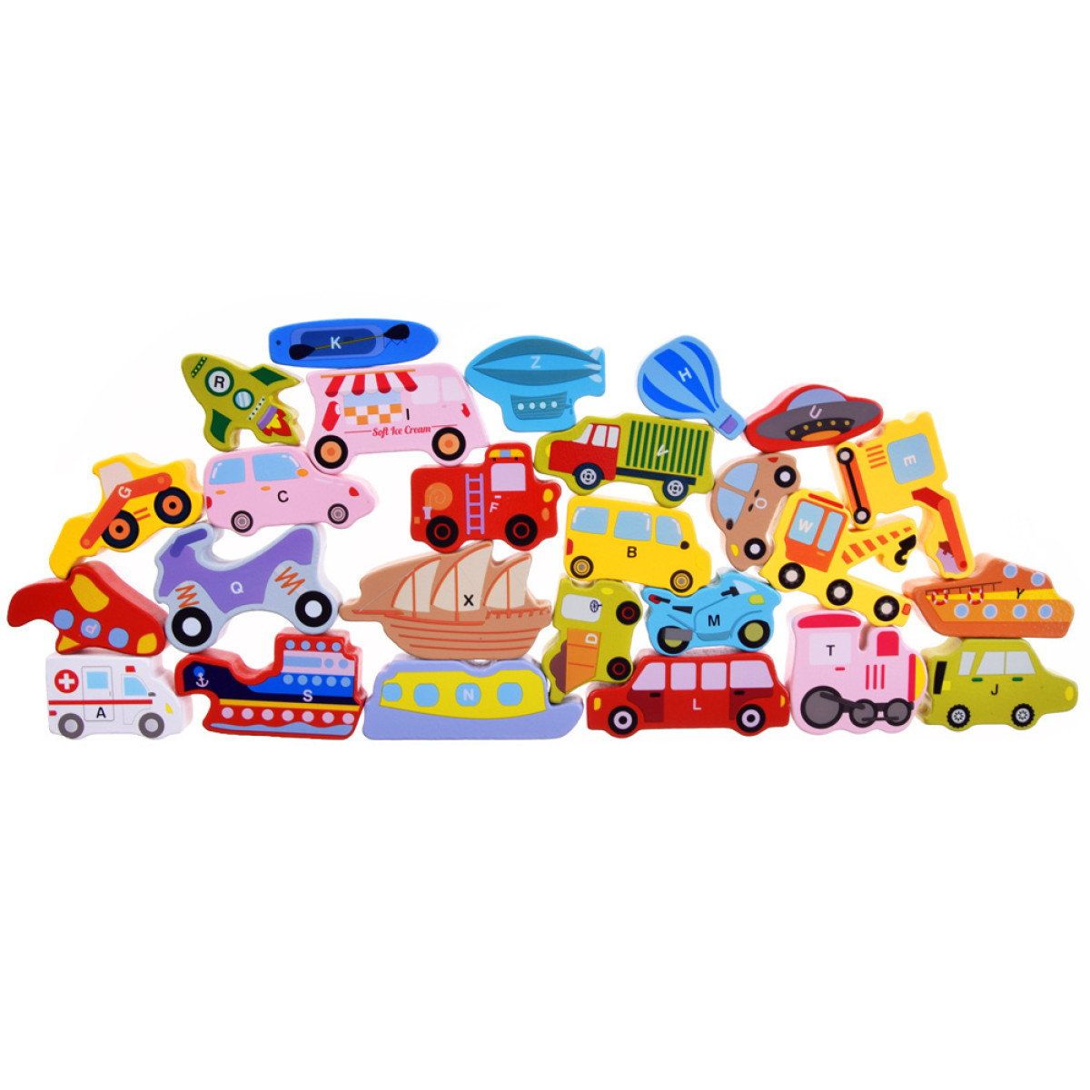Didelis, medinis 27 dalių transporto priemonių rinkinys su raidėmis mokymuisi ir žaidimui užtikrins kiekvienam vaikui daugybę puikiai praleisto laiko. Mediniai transporto priemonių modeliai yra pagaminti iš medžio ir nudažyti atitinkamomis, patraukliomis spalvomis, pritaikytomis pagal transporto priemonių funkcijas. Tokio rinkinio dėka vaikai gali mokytis transporto priemonių pavadinimų, spalvų, skaičiuoti, kurti istorijas, statyti bokštus.