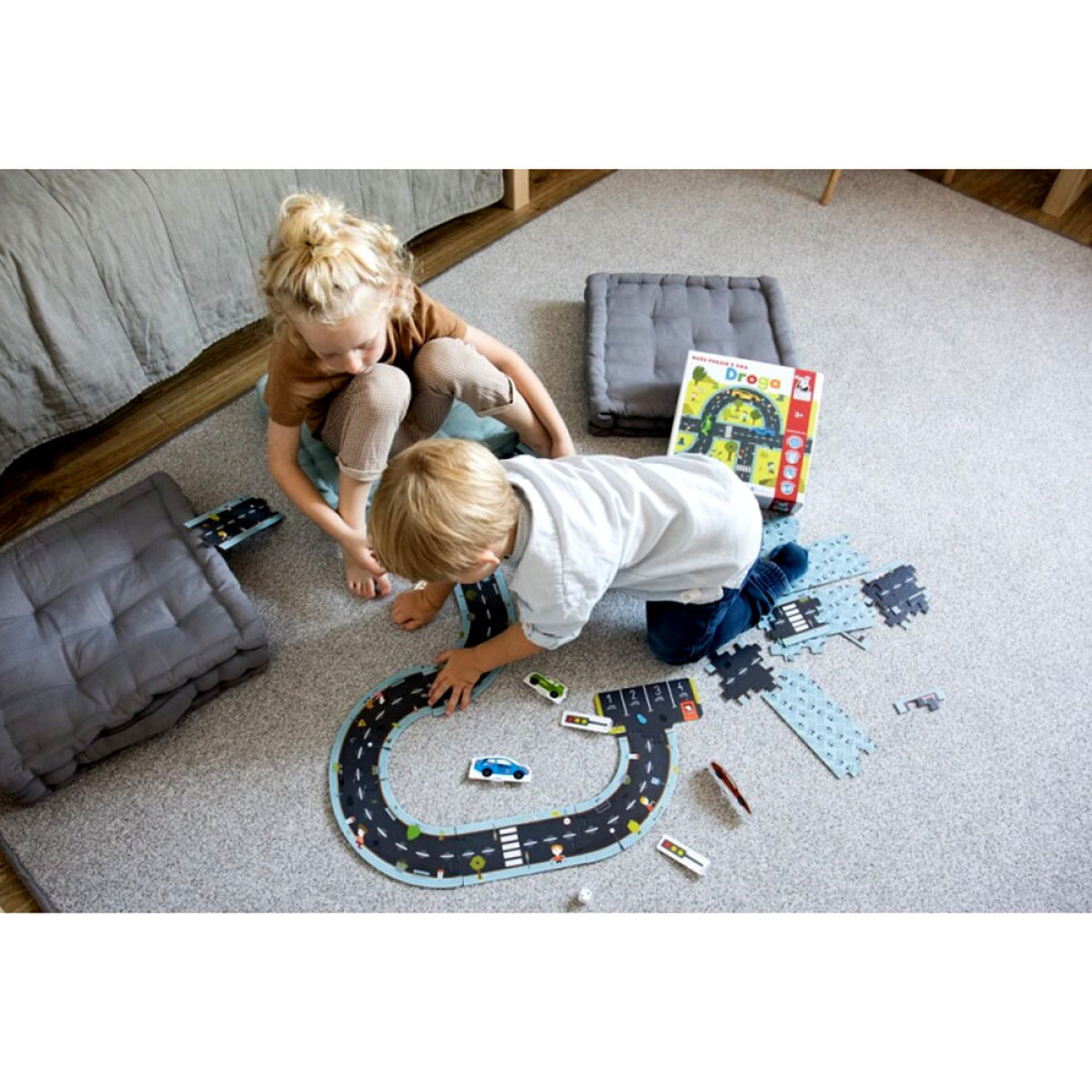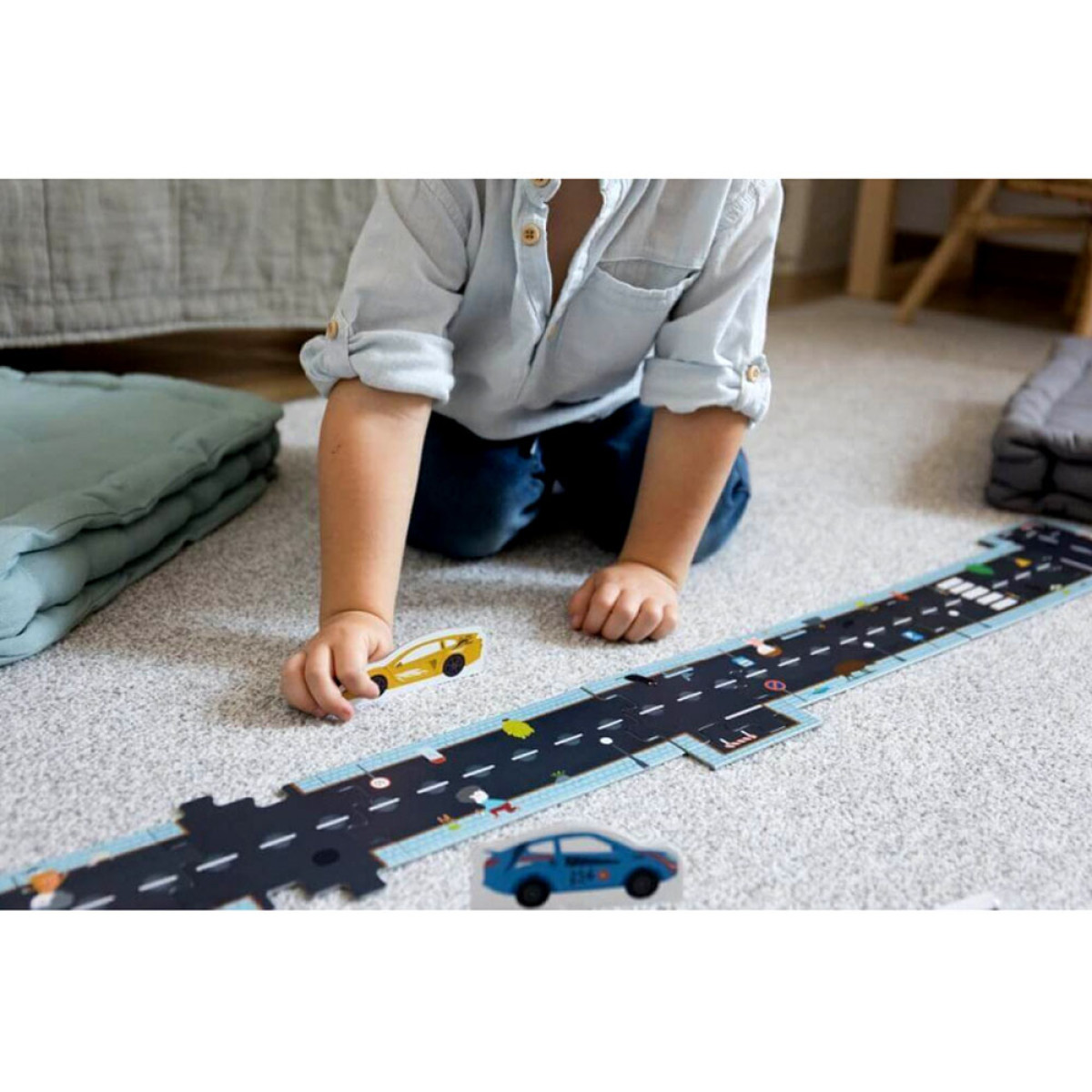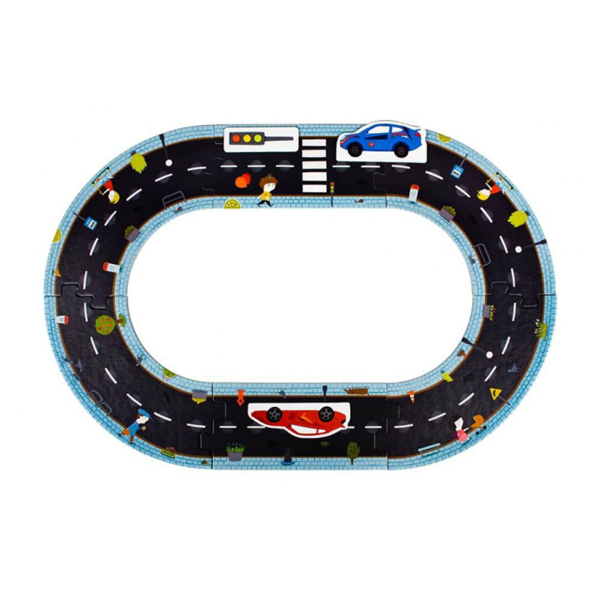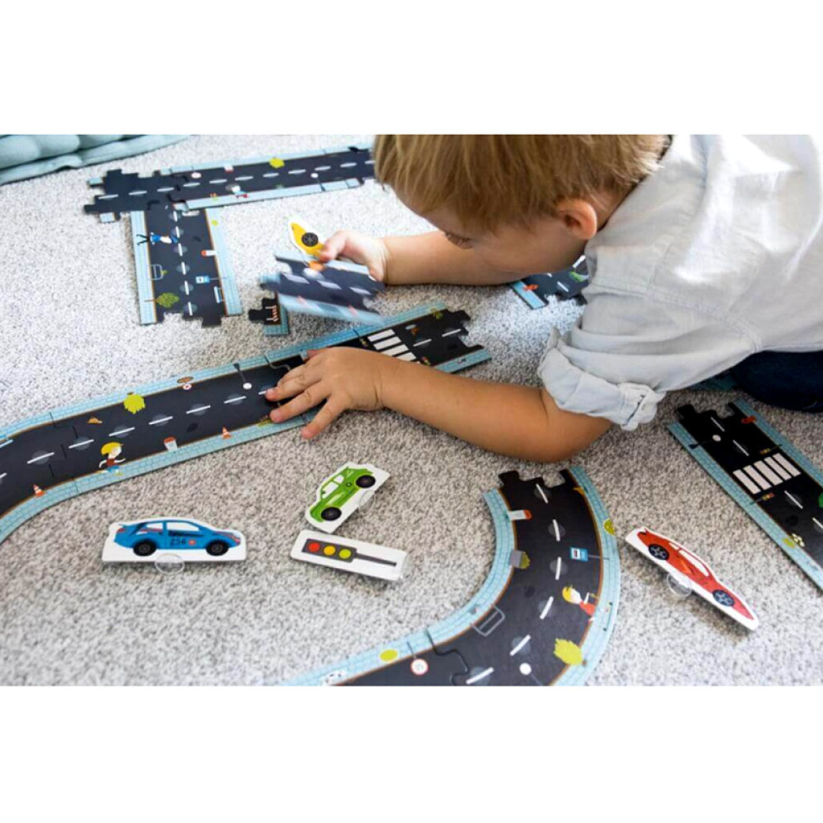 Dėlionė kelio trasa yra puikus pasirinkimas jauniausiems, kurie mėgsta kurti savo konstrukcijas. Elementus galima jungti bet kokia tvarka, naudojant visus arba tik dalį kelio atkarpų, netgi sujungiant kelis dėlionių rinkinius. Vairavimo entuziastas namuose? Leiskite jam įjungti vaizduotę, kurti trasas pagal savo idėjas ir tapti vairavimo meistru miesto lenktynėse.