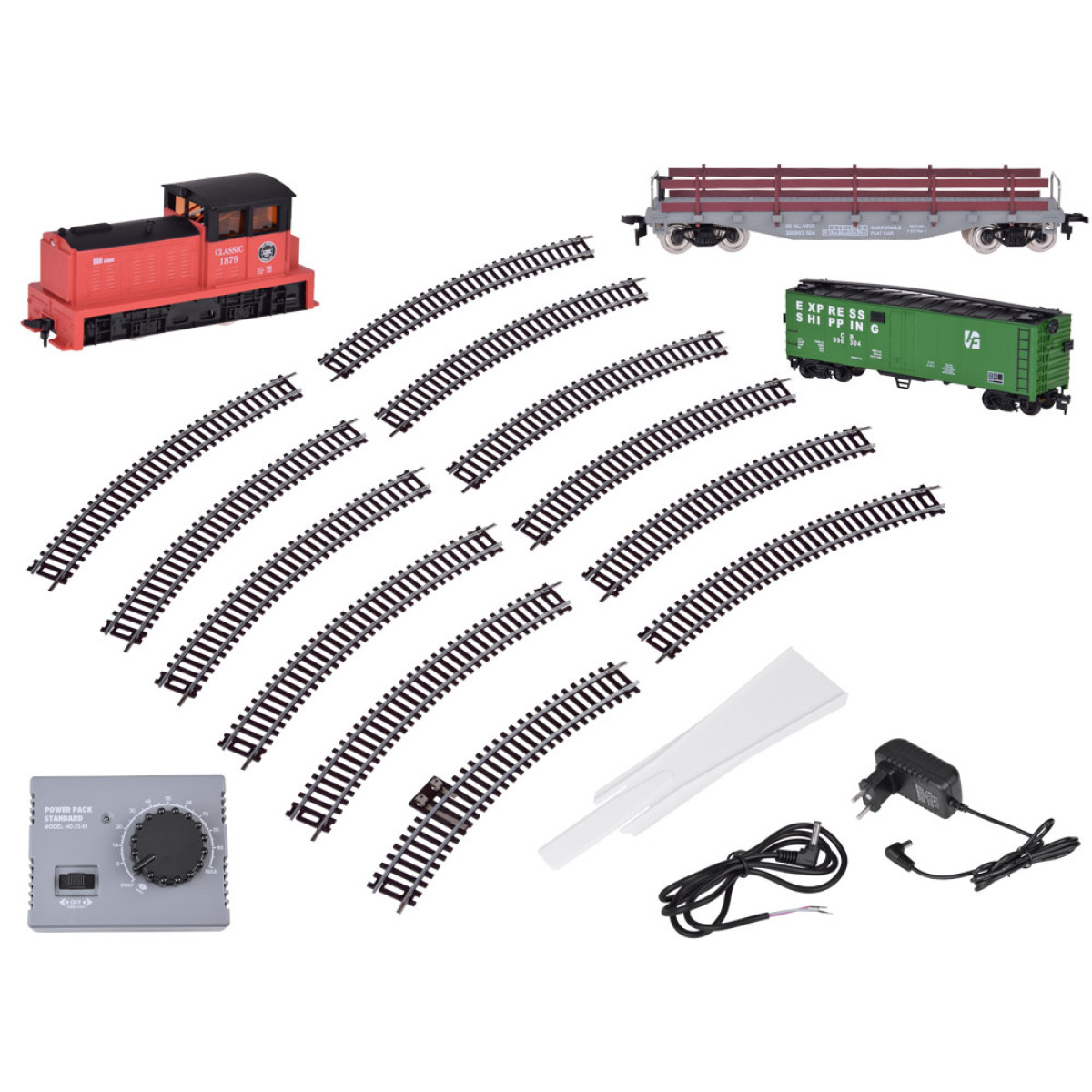 Rinkinyje rasite du prekių vagonus - uždarą ir atvirą, kuriuose galite vežti įvairius smulkius krovinius. Vagonų važiuoklėje sumontuoti važiuojamieji ratai ant sukamojo ašies, todėl jie lengvai įveikia posūkius. Kaip ir lokomotyva, vagonai pagaminti iš aukštos kokybės plastiko, su dideliu dėmesiu detalėms.