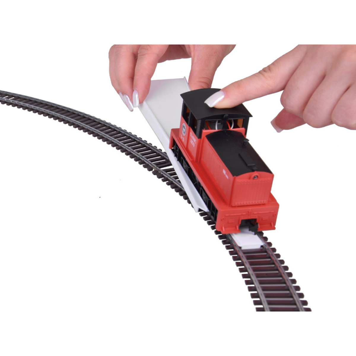 Be to, rinkinyje rasite ir bėgių įvedėją, kuris palengvins traukinio uždėjimą ant bėgių.