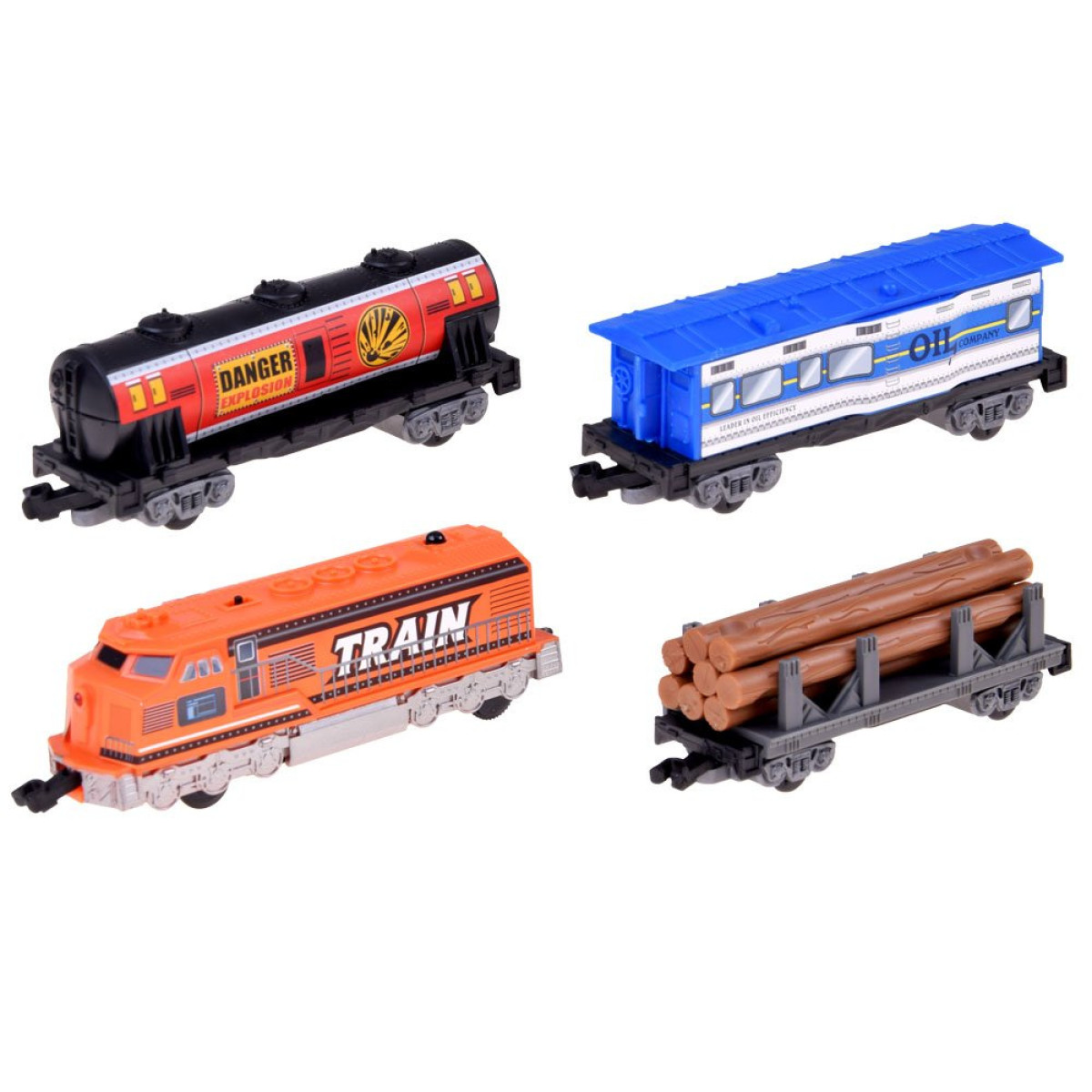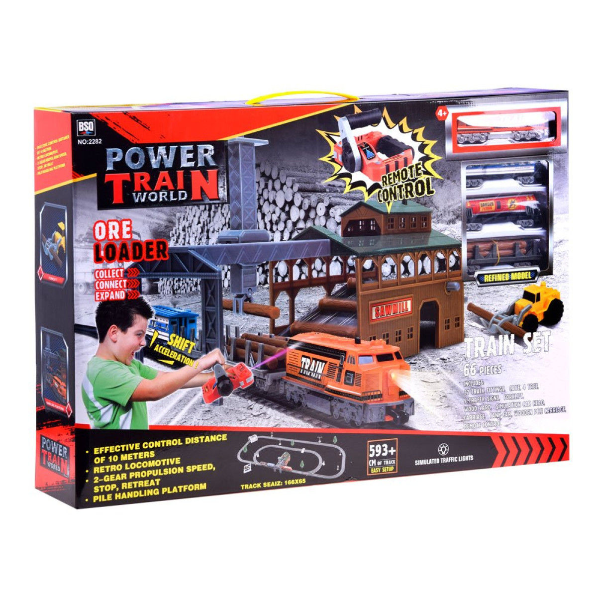 Traukinio vagonus galima keisti, įskaitant kuro cisterną, keleivinį vagoną ir medienos transportavimo vagoną. Rinkinyje taip pat yra stotis, kurioje galima pakrauti ir iškrauti medienos rąstus, naudojant įmontuotą griebtuvą ir transportavimo automobilį. Vežimėliai yra reguliuojami, tad galima sukurti įvairias trasos kombinacijas.