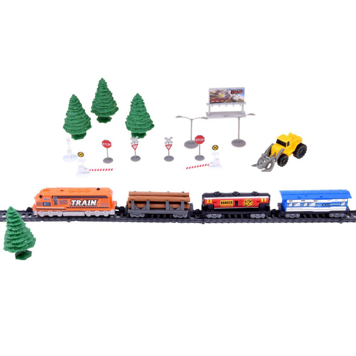 Rinkinį sudaro modernus prekių traukinys su pridedamais vagonais. Traukinys gali judėti į priekį dviem greičiais ir atgal vienu greičiu, kurie valdomi infraraudonųjų spindulių pultu. Traukinys pagamintas iš plastiko, su dideliu dėmesiu detalėms, todėl atrodo labai realistiškai. Rinkinyje yra viskas, ko reikia žaidimui: trasos, kelio ženklai, medžiai, perkrovimo stotis bei įvairūs vagonai.