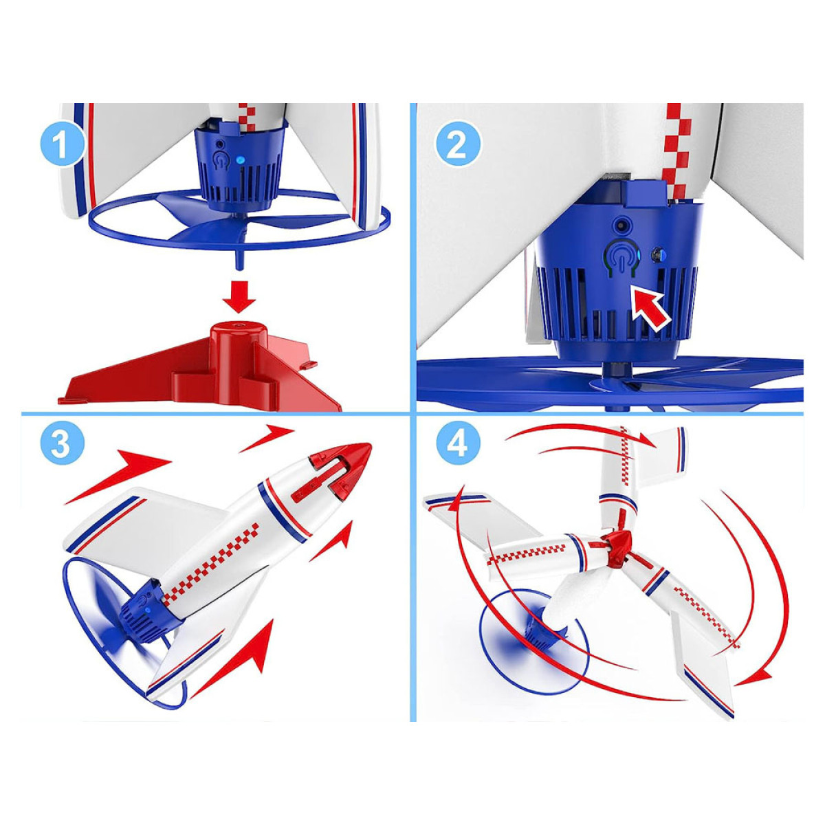 Raketa susideda iš plastikinio rėmo, apgaubto putplasčiu. Lengva konstrukcija leidžia raketai pakilti net iki 30 metrų aukščio, po to automatiškai pradeda leistis. Leidžiantis, raketos sparnai išsiskleidžia, sudarydami savotišką parašiutą, užtikrinantį saugų nusileidimą. Jei žaislas nenaudojamas, po 1 minutės pereina į miego režimą.