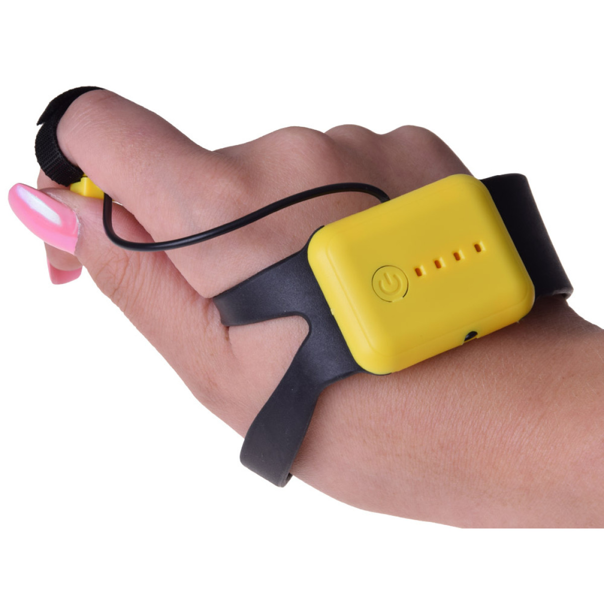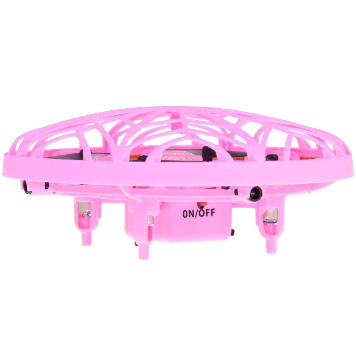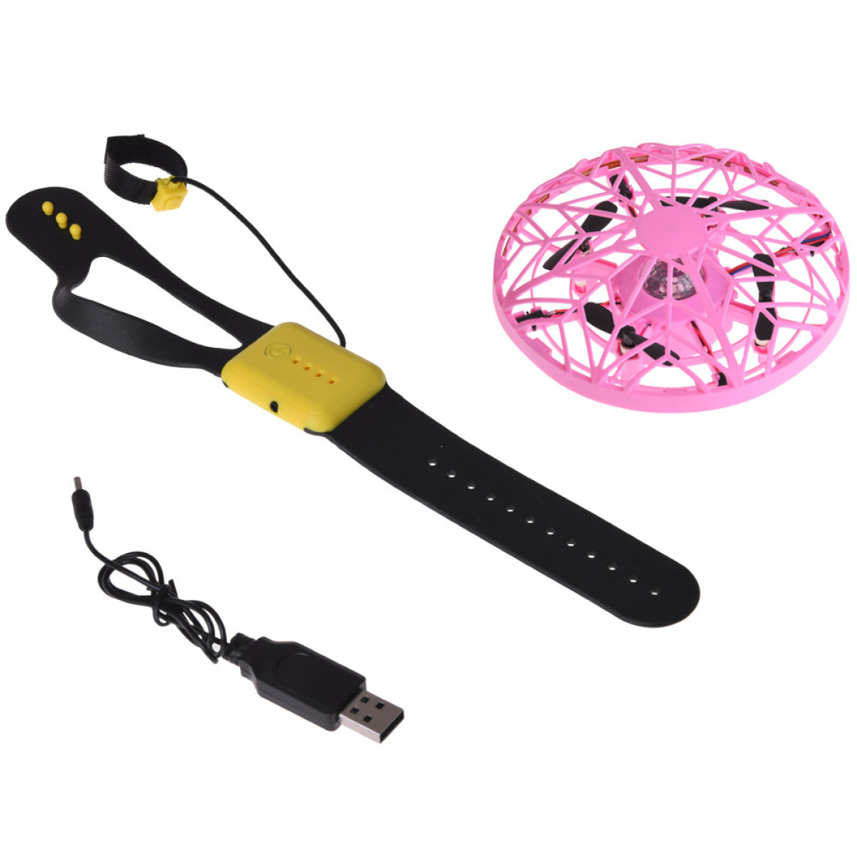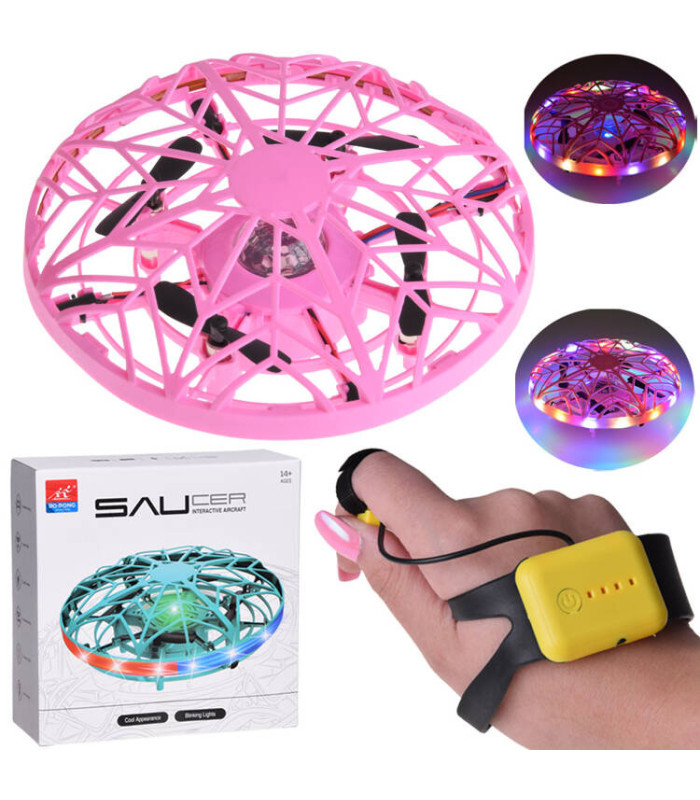 Drono valdymas vyksta specialiu pultu, kurį nešiojatės ant riešo kaip laikrodį. Žaislą galima valdyti ranka ir gestais, o švelnus rankos judesys leidžia pakeisti skrydžio kryptį dešinėn, kairėn, aukštyn ar žemyn. Po pakilimo jis lieka ore ir sukasi.