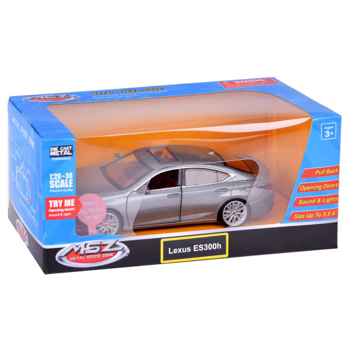 Metalinis automobilis Lexus ES300h yra puikus papildymas automobilių modelių kolekcijai. Jis pagamintas itin kruopščiai ir estetiškai, atkreipiant dėmesį į smulkiausias detales, kas tikrai sužavės kiekvieną mažą vairuotoją. Automobilis turi atsidarančias duris, taip pat garso ir šviesos efektus. Lexus turi trinties tipo variklį, kuris leidžia automobiliui važiuoti pirmyn po to, kai jis buvo atgal trauktas lygiu paviršiumi. Automobilis taip pat gali būti stumiamas.