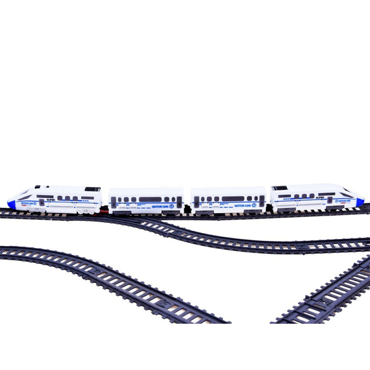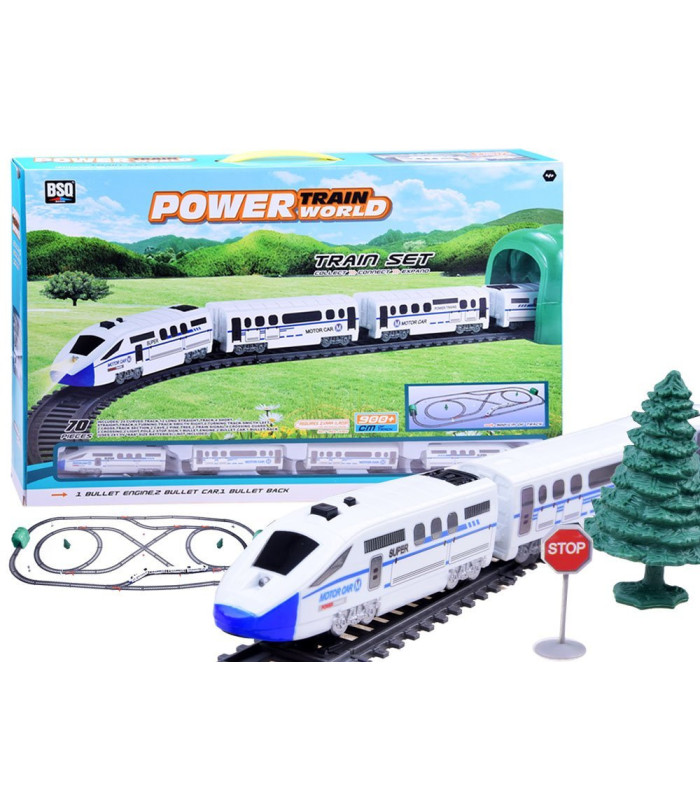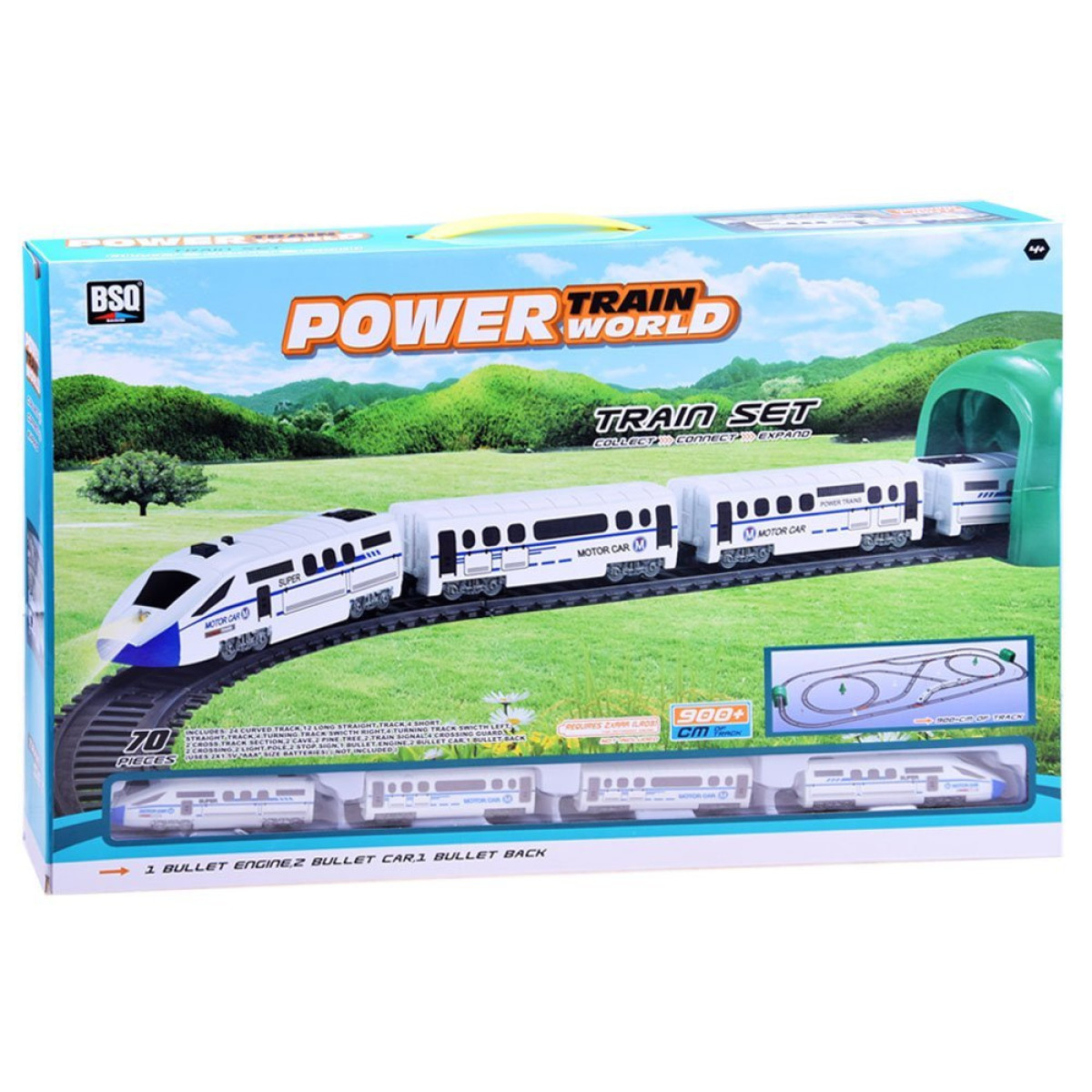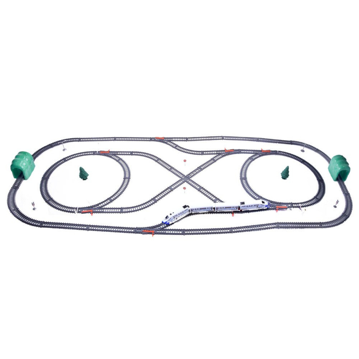 Modernus elektrinis traukinys su keleiviniais vagonais ir 9 metrų ilgio trasa suteiks puikią pramogą. Traukinys pagamintas iš plastiko, turi priekyje šviečiantį raudoną šviesos diodą ir greičio reguliavimo funkciją. Kruopščiai sukonstruotas traukinys su keleiviniais vagonais gali įveikti daugybę trasos. Šiuolaikinis traukinys yra saugus žaislas, baterijos įdedamos į lokomotyvo vidų.