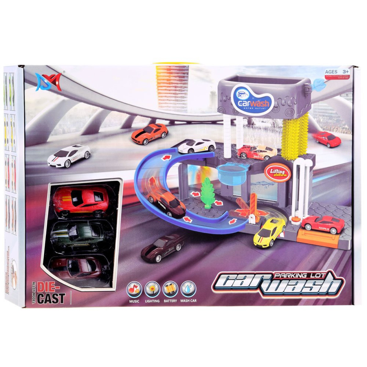 Ši plovykla skirta automobilių priežiūrai ir patiks visiems švaros mėgėjams. Plovykla su rampomis, liftu, tikru vandeniu, silikoniniais šepečiais, garso ir šviesos efektais sužavės kiekvieną vaiką. Visas komplektas pagamintas iš plastiko, pirmajame aukšte yra liftas, kuris leidžia automobiliui pakilti, o po plovimo saugiai nusileisti. Norint nuplauti automobilį, viršutinėje žaislo dalyje reikia įpilti šiek tiek vandens, o mėlyna rankenėle dozuoti vandenį, kuris krenta ant automobilio. Po plovimo automobilis leidžiasi žemyn, kur yra nusausinamas rankšluosčiu. Visas rinkinys papuoštas lipdukais, šviesos ir garso efektais, kurie praturtina žaidimą.