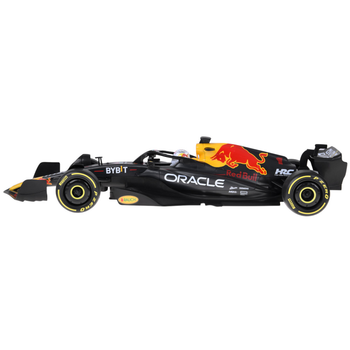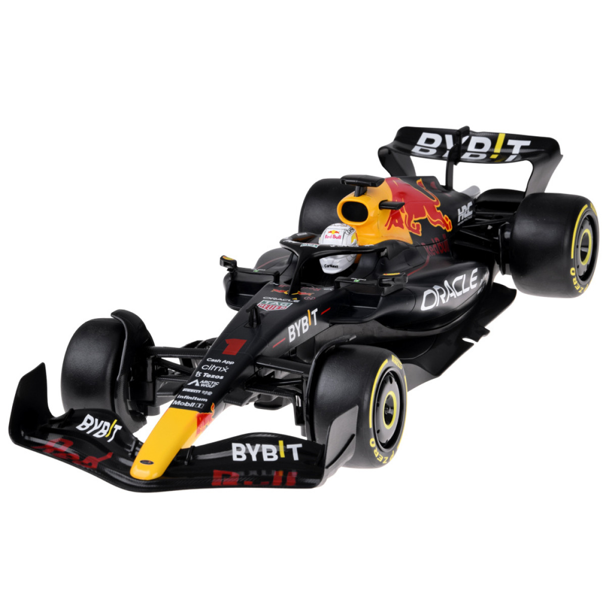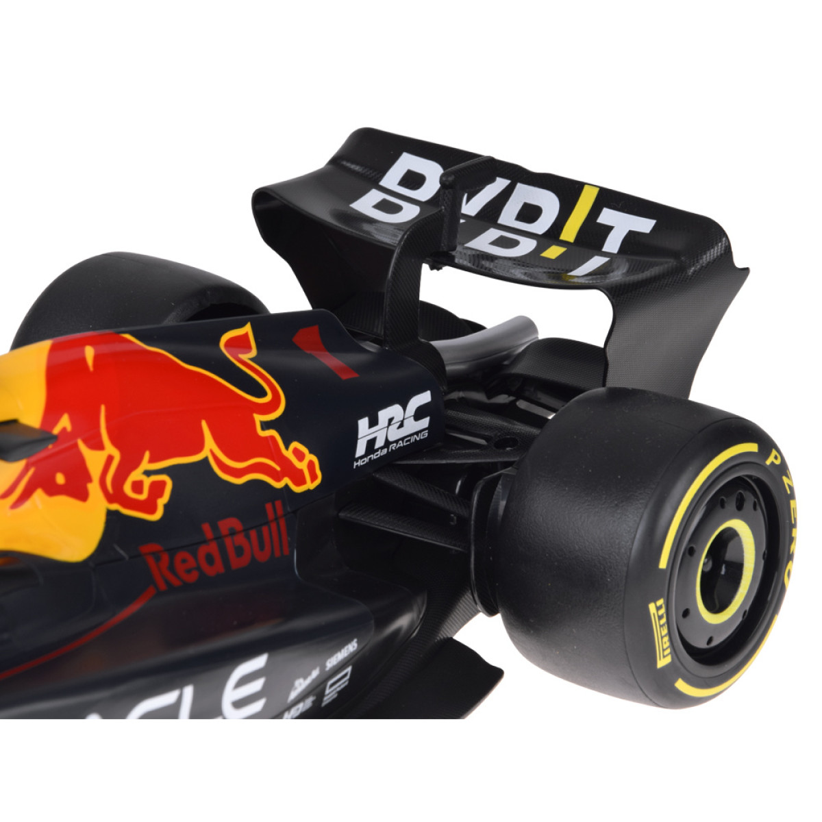 RB18 bolidas žavi detalių gausa! Aerodinaminė forma, būdinga kėbulo linija ir netgi vairuotojo figūrėlė viduje suteikia jausmą, kad prieš jus tikras lenktynių automobilis! Modelis pagamintas iš aukštos kokybės plastiko, atsparaus pažeidimams. Tvirti elementai užtikrina ilgaamžiškumą, o žemai esantis svorio centras palengvina valdymą. Didelės guminės padangos pagerina automobilio sukibimą su paviršiumi, suteikdamos daug džiaugsmo posūkiuose. Be to, automobilis turi ratų suvedimo nustatymą. Su tokiu automobiliu pasijusite kaip profesionalus Formulės 1 vairuotojas!