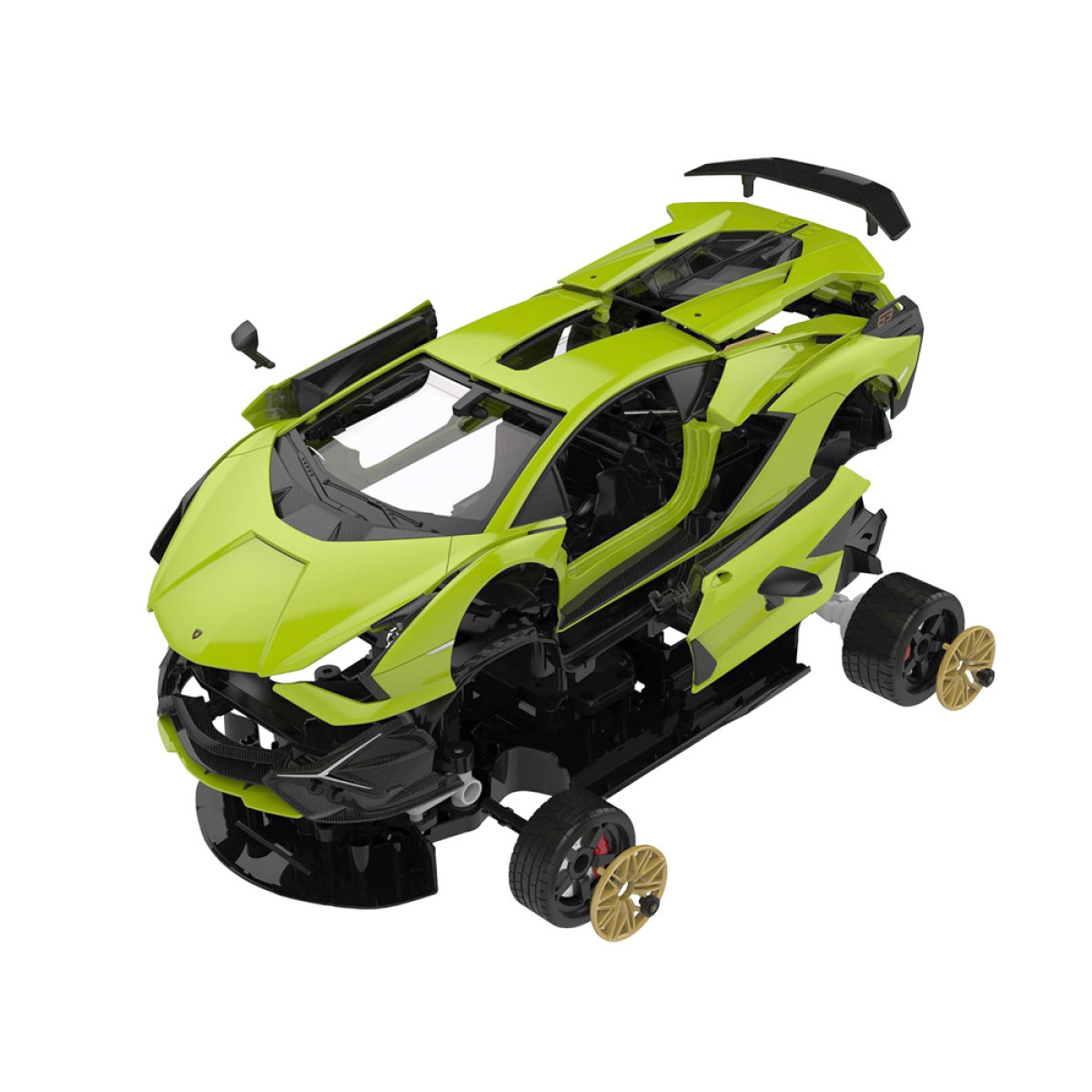 Modelis pagamintas iš aukštos kokybės komponentų, kurie atitinka tikro Lamborghini Sian FKP 37 detales – nuo aerodinaminio kėbulo iki charakteringų sportinių linijų. Modelį išskiria atidaromos durys ir bagažinė, suteikiančios dar daugiau realistiškumo. Papildomi lipdukai pabrėžia sportinį automobilio charakterį. Ar pramoga baigiasi surinkus modelį? Ne! Po surinkimo automobilį galima pilnai valdyti naudojant 2.4 GHz pultą, kuris užtikrina sklandų ir tikslų vairavimą.