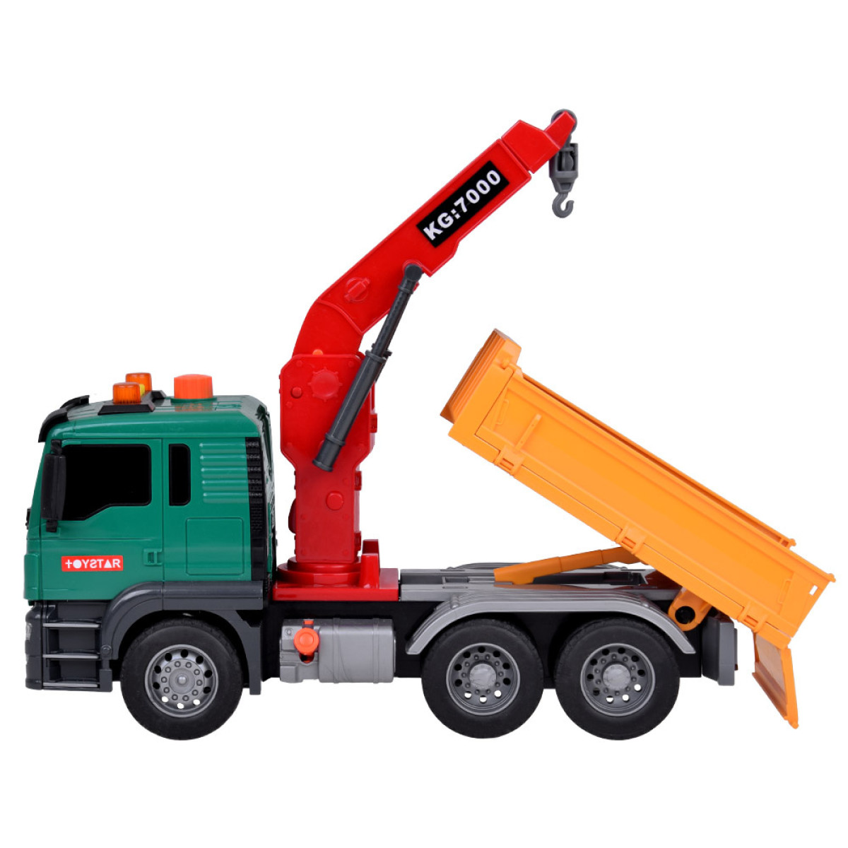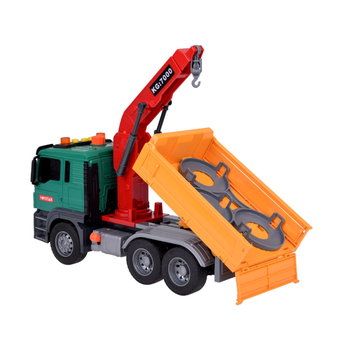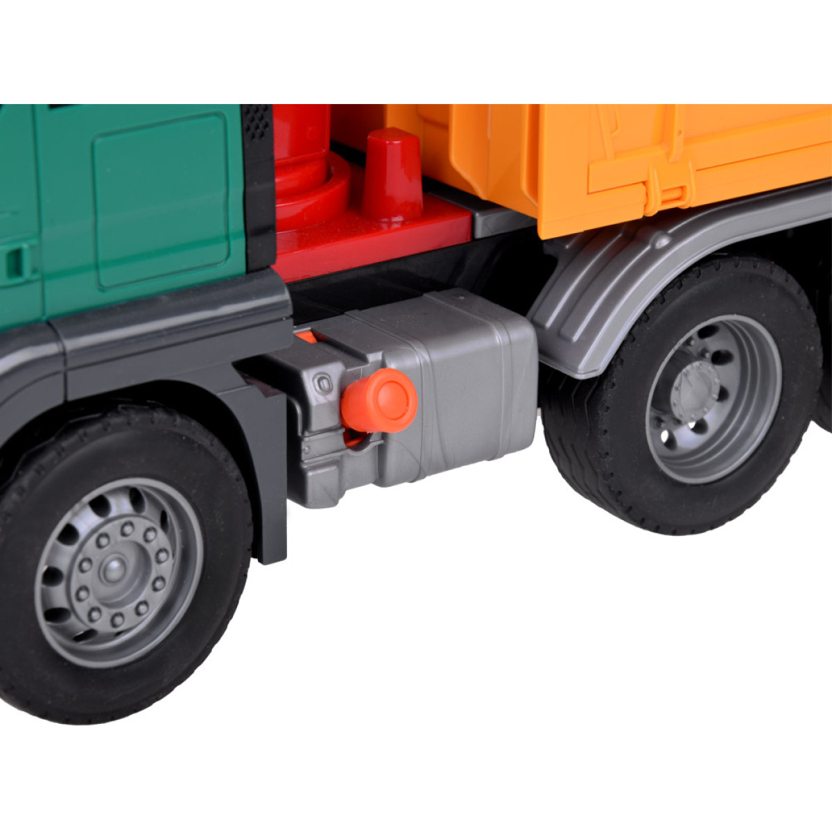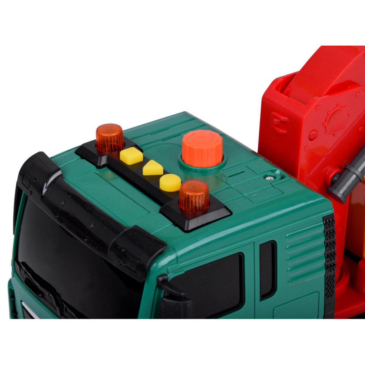 • Garso ir šviesos efektai: Vairuotojo kabinoje mirksi šviesos, o paspaudus mygtuką, girdisi variklio ir transporto priemonės užvedimo garsai.
