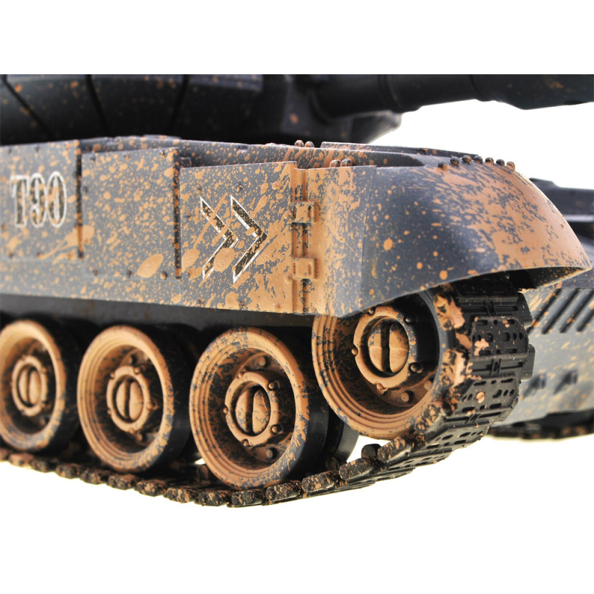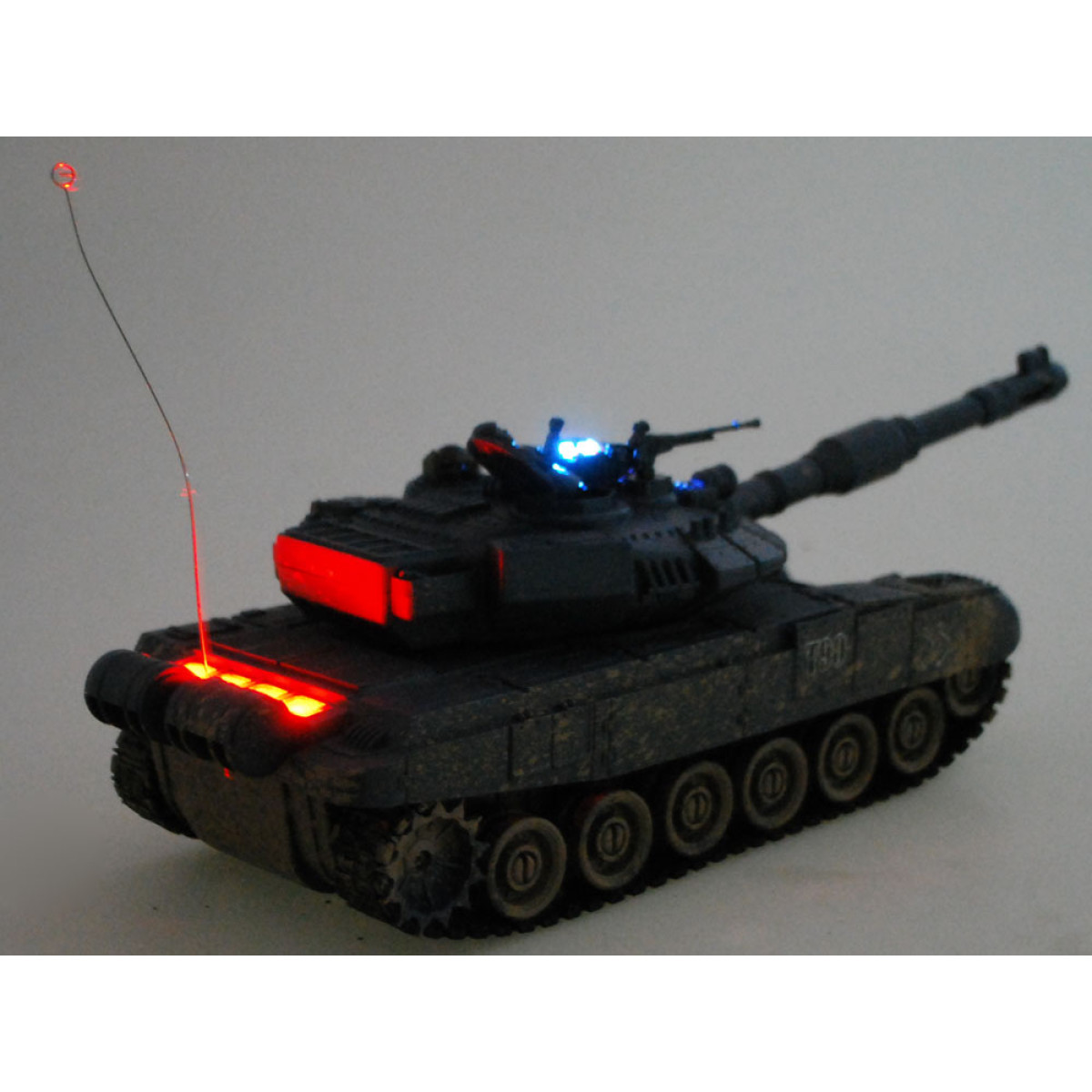 Pažangus nuotoliniu būdu valdomas tankas T90 su šaudymo funkcija ir šviesos efektais. Šis grafito spalvos tankas su purvo imitacija puikiai atrodo gyvai. Tankas turi pasukamą bokštelį, kuris gali suktis 180 laipsnių, suteikdamas 360 laipsnių šaudymo galimybes. Tankas T90 yra aprūpintas efektyviu apšvietimu, kuris įspūdingai atrodo tamsesnėse patalpose. Bokštelyje yra atidaromas liukas, kur galima patalpinti pridedamą tankistą su kulkosvaidžiu. Nuotoliniu būdu valdomi tankai yra maitinami pridedamu akumuliatoriumi, kuris žymiai sumažina eksploatacijos kaštus. Tankas T90 juda pirmyn, atgal, sukasi į dešinę ir į kairę.