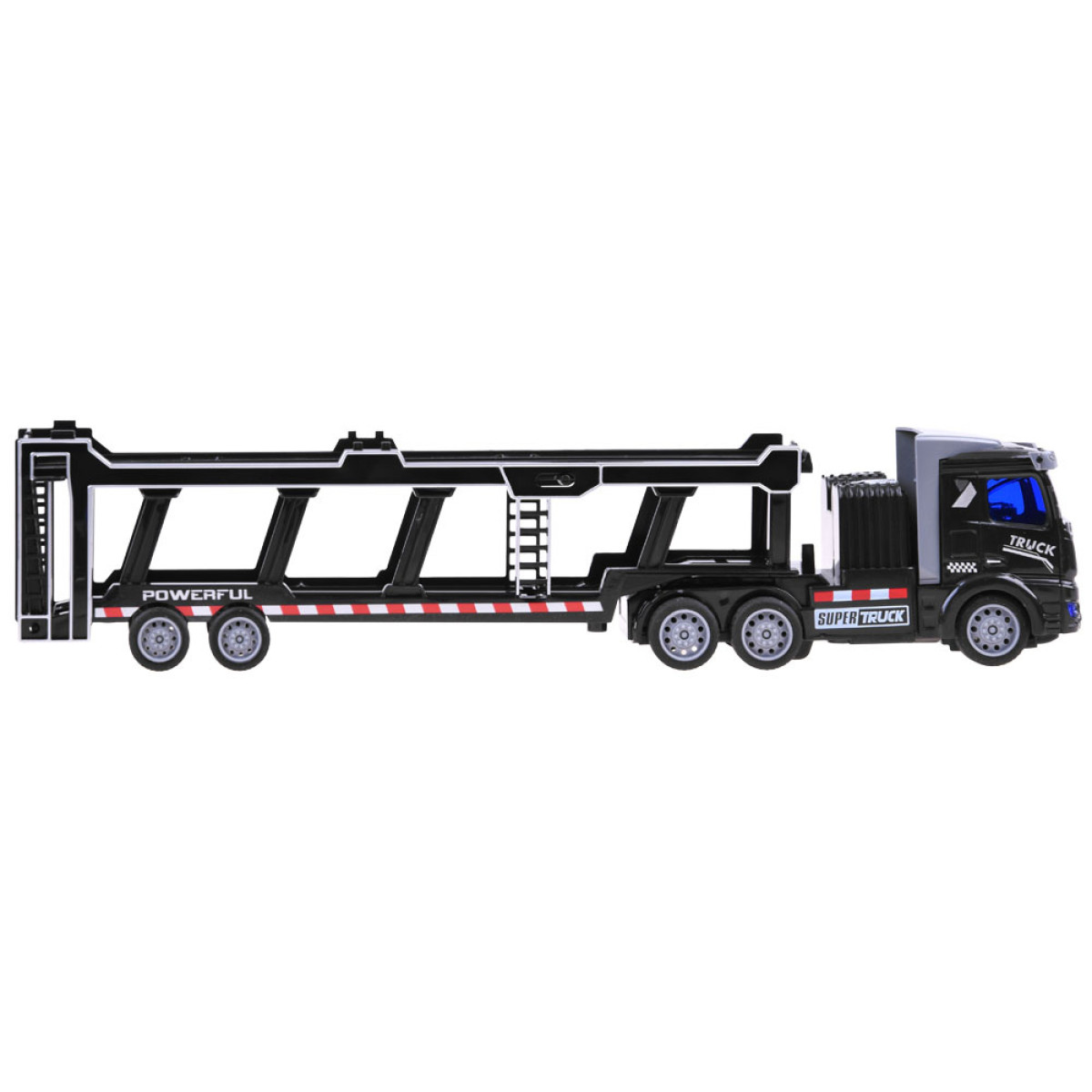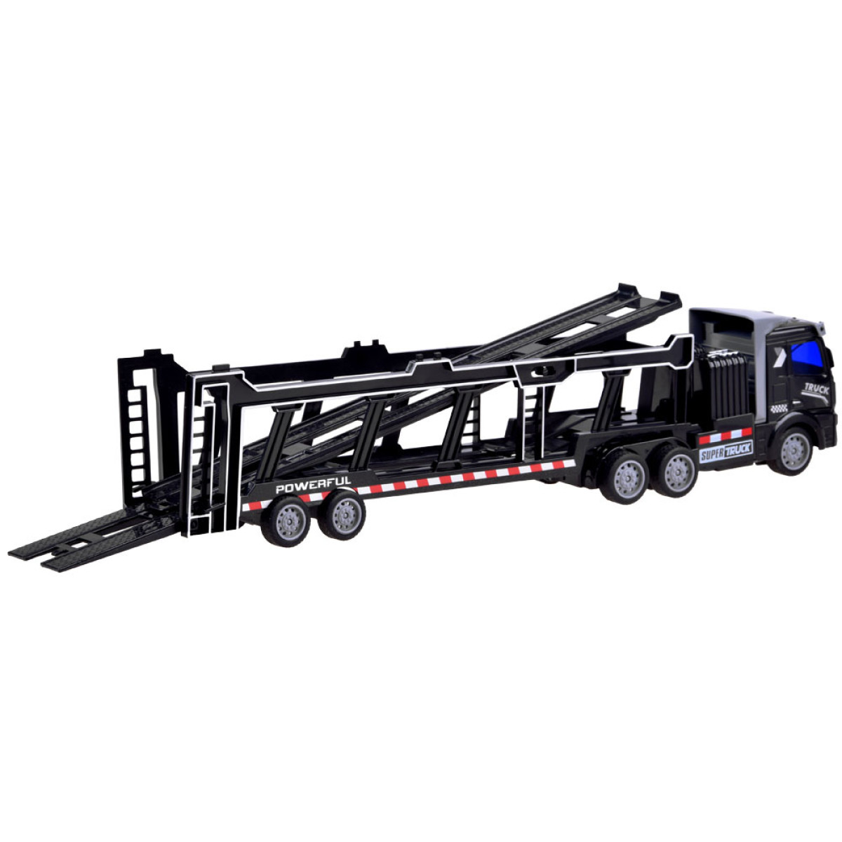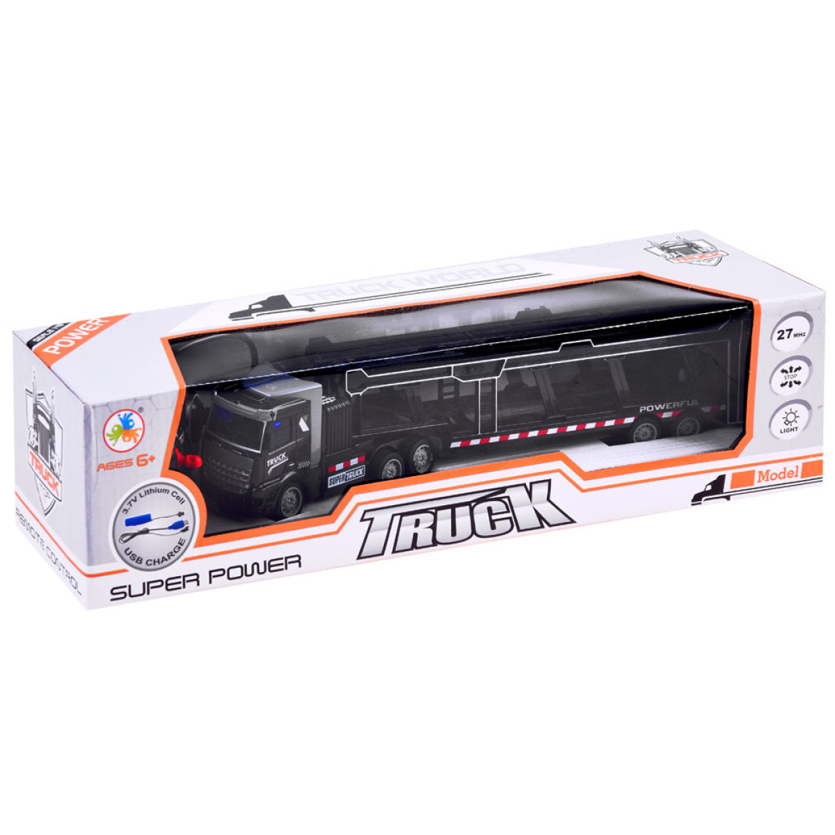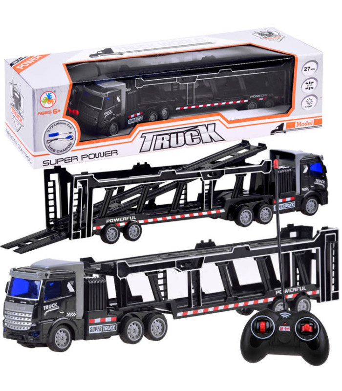 Šis žaislas yra puikus pramogų šaltinis, kuriuo niekada nesusitvarkysite. Jo dizainas atkartoja tikrus automobilius, kurie važinėja mūsų keliais. Pulteliu, dirbančiu 27 MHz dažniu, galite valdyti sunkvežimį. Kompaktiškas pultelis puikiai telpa rankose, leidžia judėti į priekį ir atgal, sukti į dešinę ir į kairę. Tralo priekaba yra sukonstruota taip, kad ją galima lankstyti kaip tikrą sunkvežimį, todėl parkavimas tampa lengvas. Galinės tralo durys atsidaro, o viršutinė pakopa galima nuleisti, kad transportuojami automobiliai galėtų nusileisti. Be to, visą sistemą galima atjungti nuo traktoriaus.