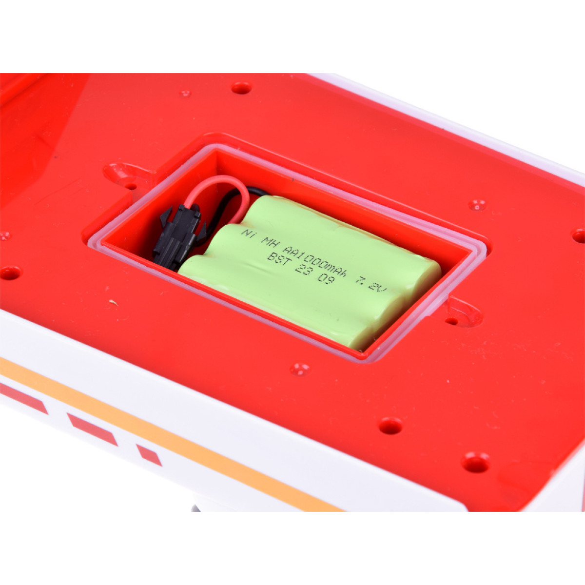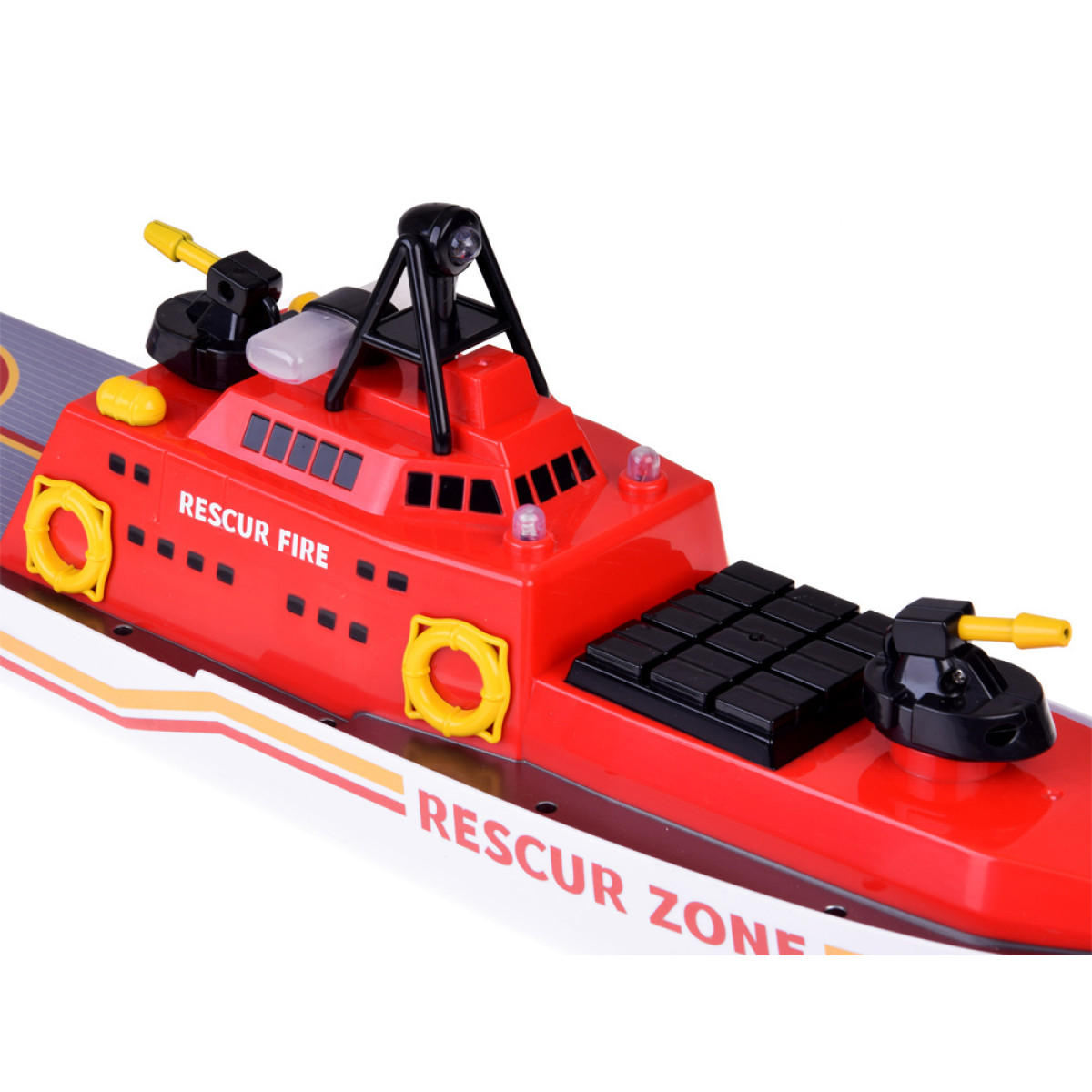 Gaisrinė valtis taip pat gali purkšti vandenį. Ant valties priekio yra vandens patranka, kuri valdoma nuotoliniu būdu, sukasi į dešinę ir kairę, leidžiant tiksliai taikytis į tikslą. Valtis pradeda veikti vos susilietusi su vandeniu, tada galima pradėti valdyti valtį nuotoliniu būdu. Žaidimo džiaugsmas garantuotas!