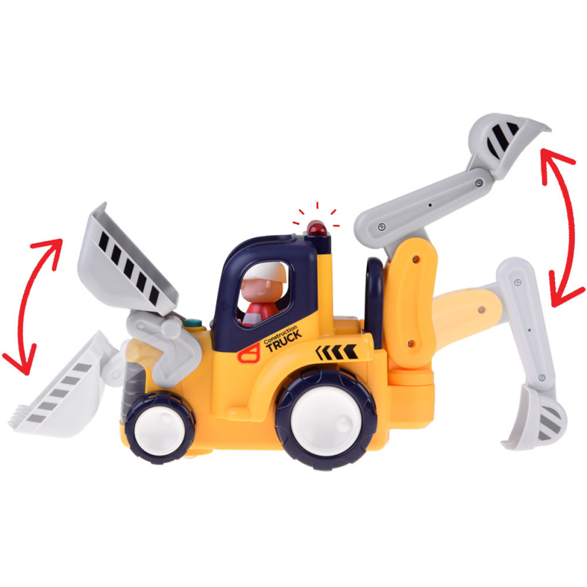 - Priekinis kaušas – rankiniu būdu stumkite ir nustatykite automobilio kaušą, kad būtų įjungti realistiški variklio darbo garsai ir kiti elementai, kurie visiškai imituoja tikro statybinio automobilio funkcionalumą.