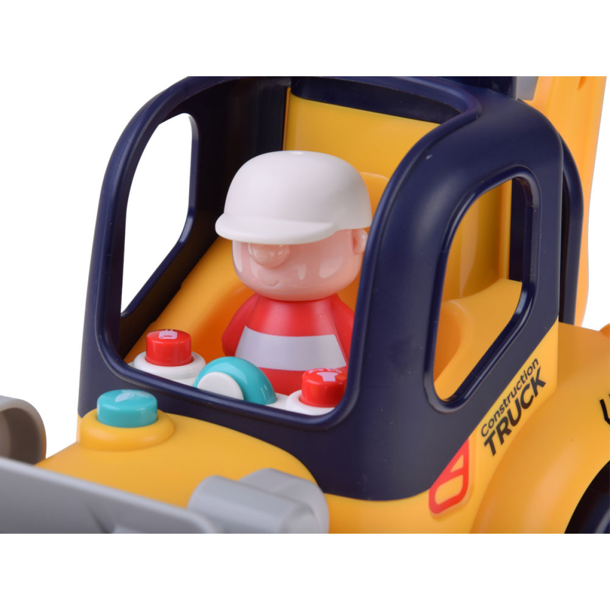 Šis statybinis automobilis pasižymi malonia geltonai-juoda spalvų gama ir yra pagamintas iš aukštos kokybės, patvaraus plastiko su suapvalintais kraštais, užtikrinančio saugumą žaidžiant. Tai puikus žaislas, kuris derina realistišką tikro statybinio automobilio vaizdą su edukacinėmis ir lavinamomis funkcijomis. Naudodamiesi šiuo automobiliu, vaikai gali ne tik žaisti realistiškus statybos scenarijus, bet ir lavinti savo rankų įgūdžius, koordinaciją bei loginį mąstymą.