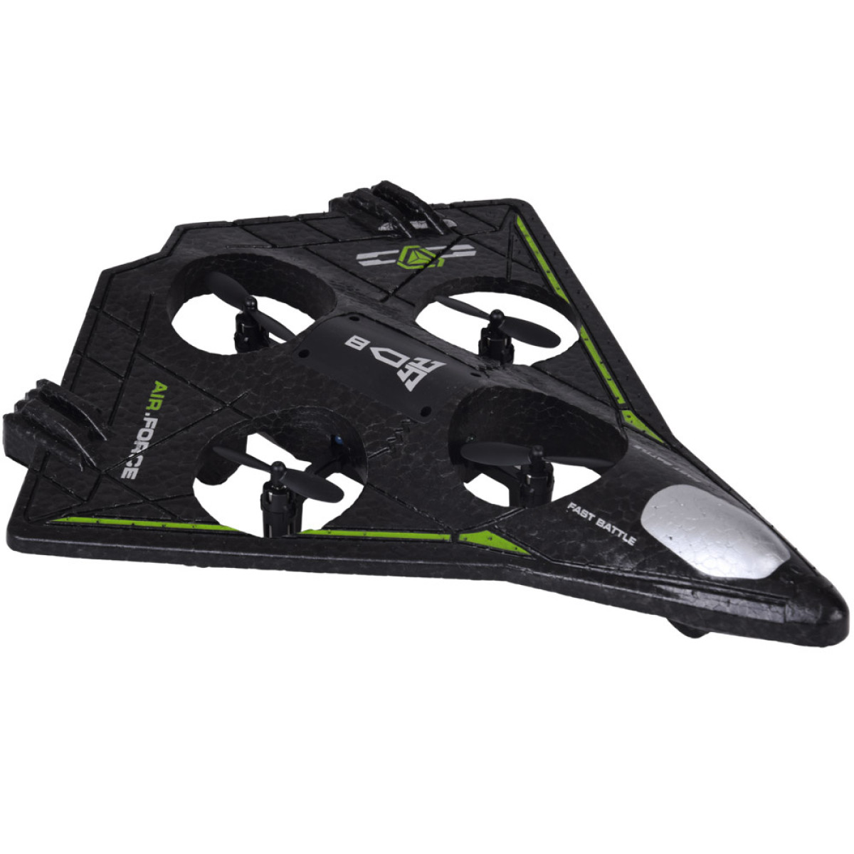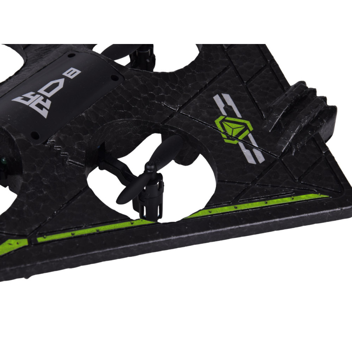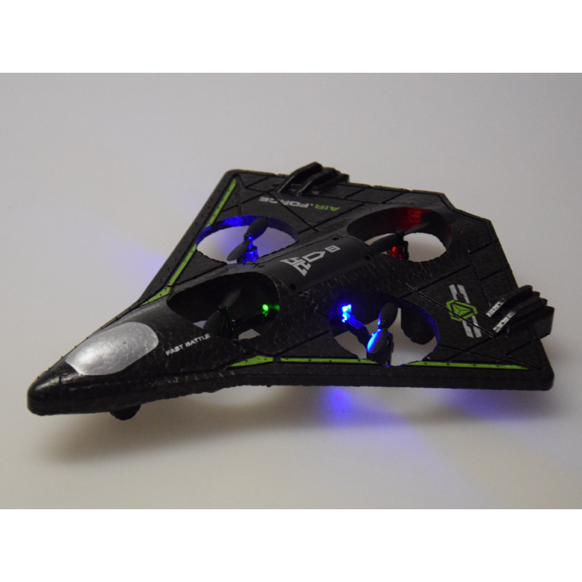 Naudodamiesi tiksliu pulteliu su svirtelėmis, galite laisvai manevruoti dronu ore – kilti, suktis, atlikti įspūdingus 360° akrobatikos triukus! Papildomi spalvotų LED diodų (raudonos, mėlynos, žalios) šviesos efektai dar labiau išryškina skrydį, ypač sutemus.
