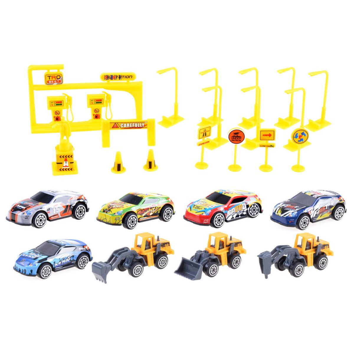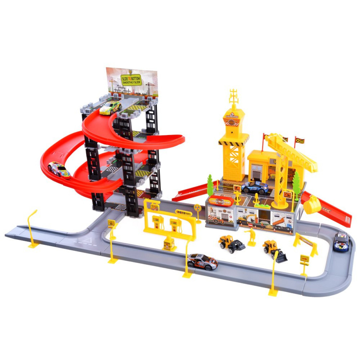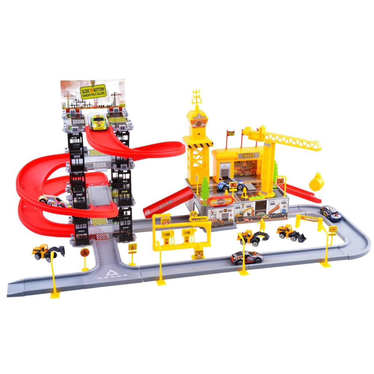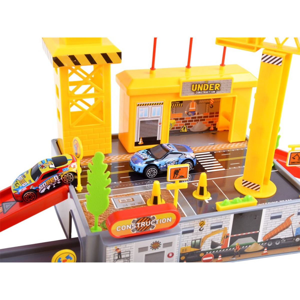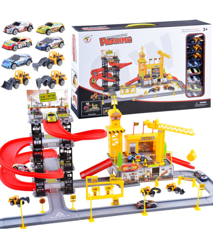 Daugiaelementis rinkinys, skirtas sukurti statybų aikštelės automobilių stovėjimo aikštelę, suteiks kiekvienam vaikui daug kūrybiško žaidimo džiaugsmo. Rinkinys pagamintas iš plastiko, ryškiomis spalvomis ir su gausiu priedų komplektu. Keturių lygių stovėjimo aikštelė su automobilių nusileidimo takeliais taip pat turi stovėjimo vietas, degalinę ir kelio ženklus. Ji sujungta su statybų aikštele plačiu keliu automobiliams. Atvykusi į darbą statybų komanda palieka savo automobilius stovėjimo aikštelėje ir eina dirbti į statybų aikštelę. Statybų aikštelėje yra kranas, ekskavatoriai ir įspėjamieji ženklai, viskas, kas būtina.