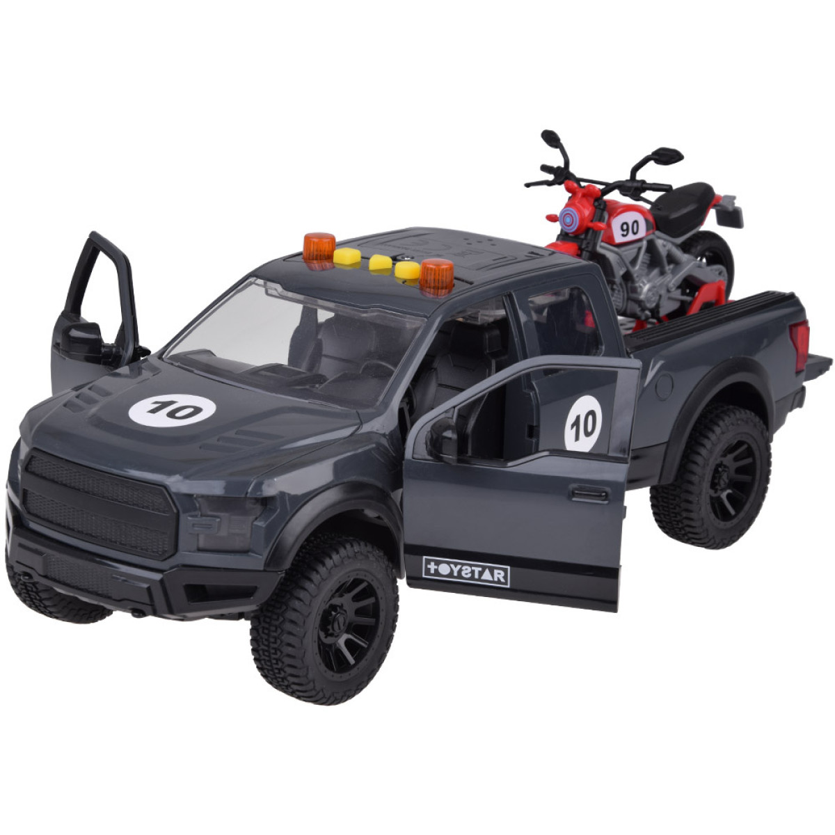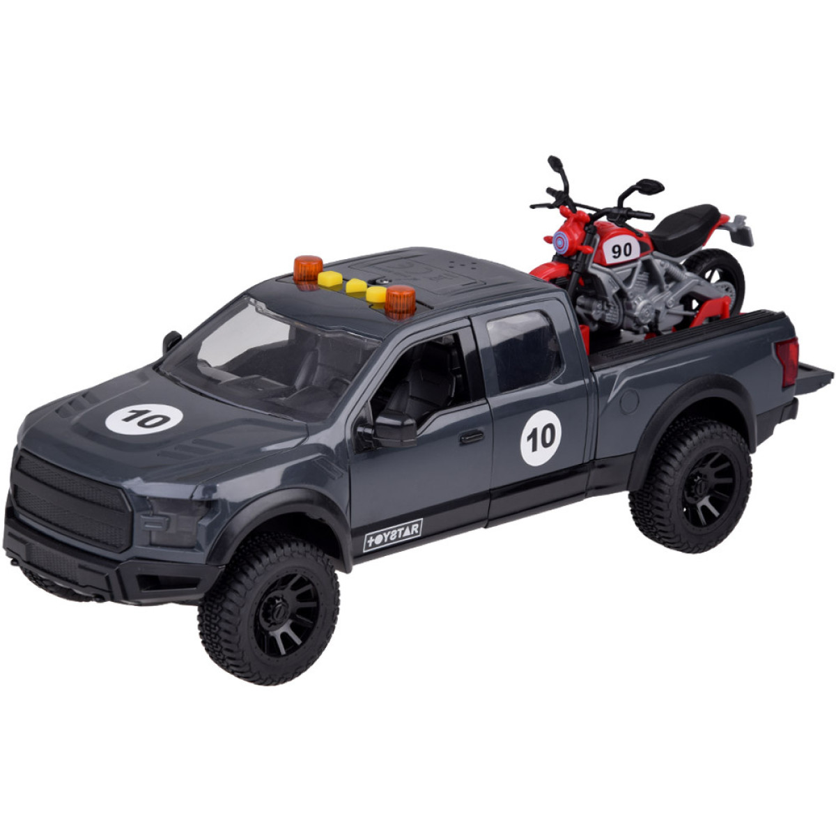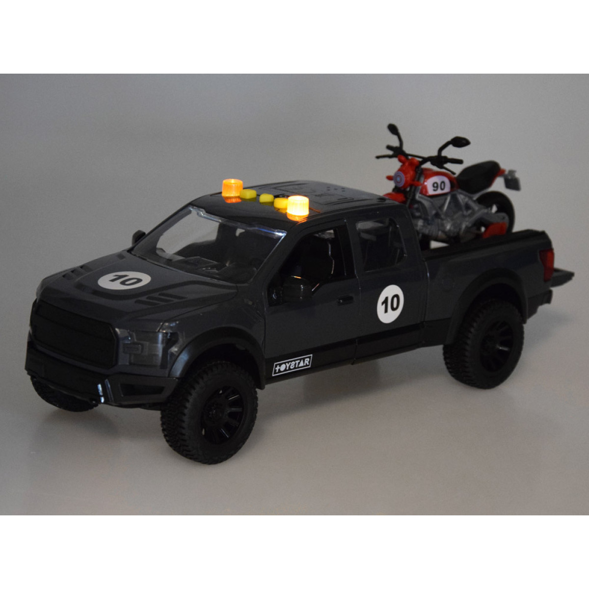 Šis žaislas automobilis su motociklu yra puikus pasirinkimas mažiesiems automobilių mėgėjams! Tvirta pikapo konstrukcija užtikrina ilgaamžiškumą, o ant galinio bagažinės esantis motociklas suteikia vaikams galimybę jį lengvai nuimti ir vežioti.