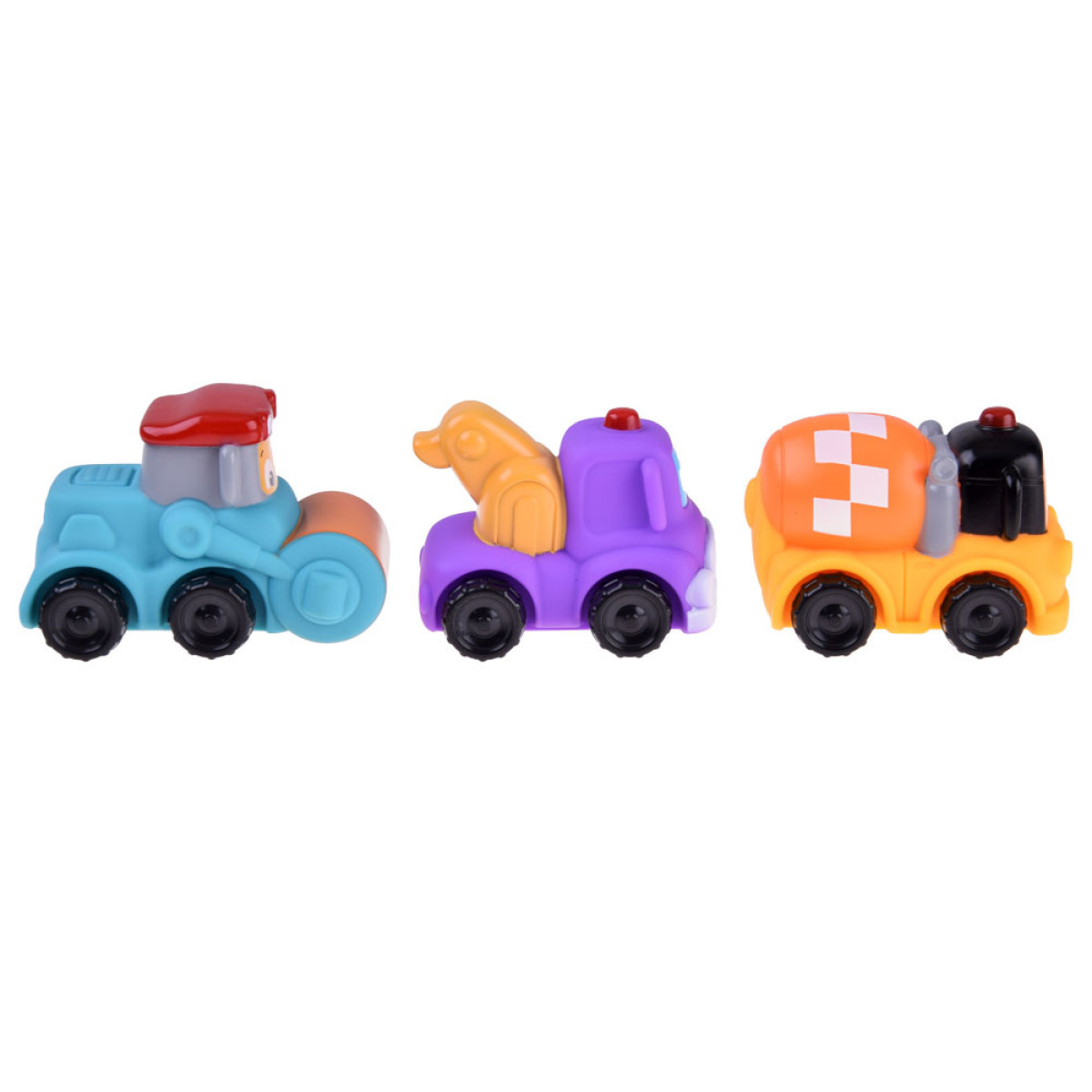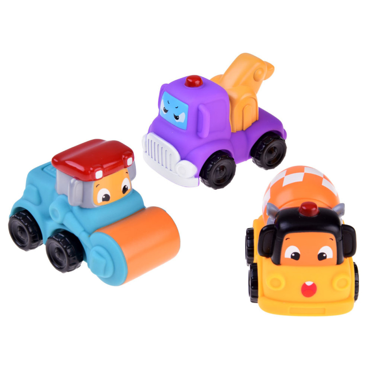 Šis 3 statybinių automobilių rinkinys užtikrina smagią ir saugią žaidimų patirtį vaikams nuo 18 mėnesių. Automobiliai pagaminti iš gumos ir plastiko, todėl neturi aštrių kampų ar smulkių detalių, todėl juos drąsiai galima dovanoti net mažyliams.