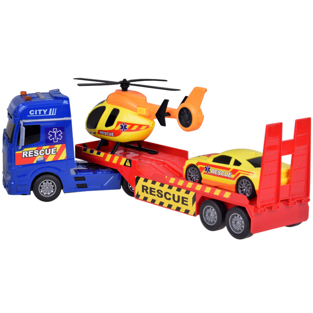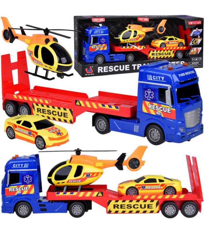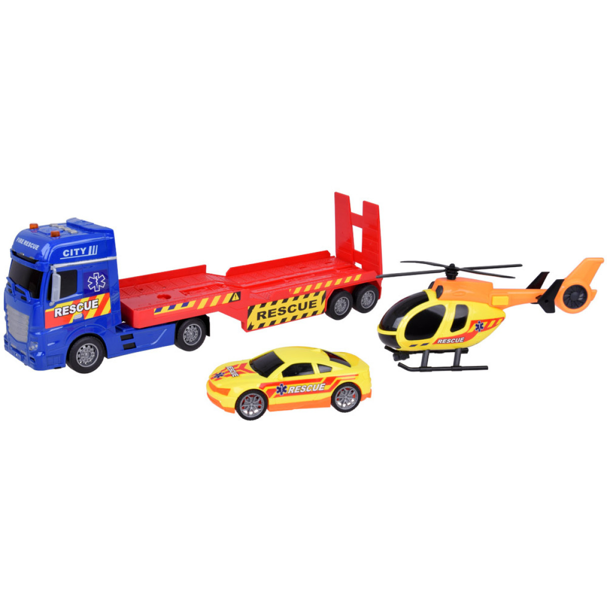 Šis rinkinys padeda vaikams pasinerti į gelbėjimo akcijų pasaulį. Žaiskite realistiškai su gelbėjimo transporto priemonėmis, tokiomis kaip sunkvežimis su priekaba, sraigtasparnis ir automobilis.