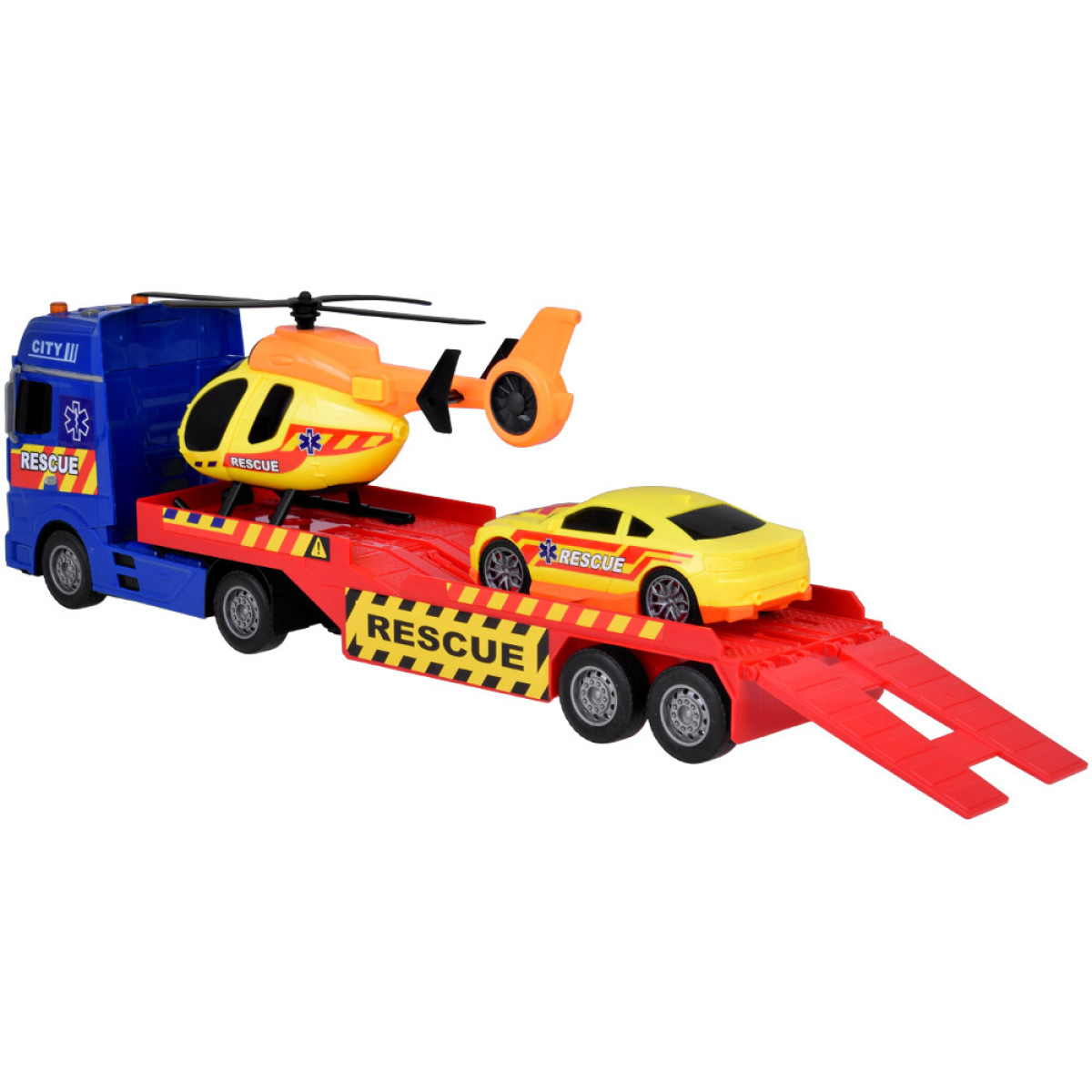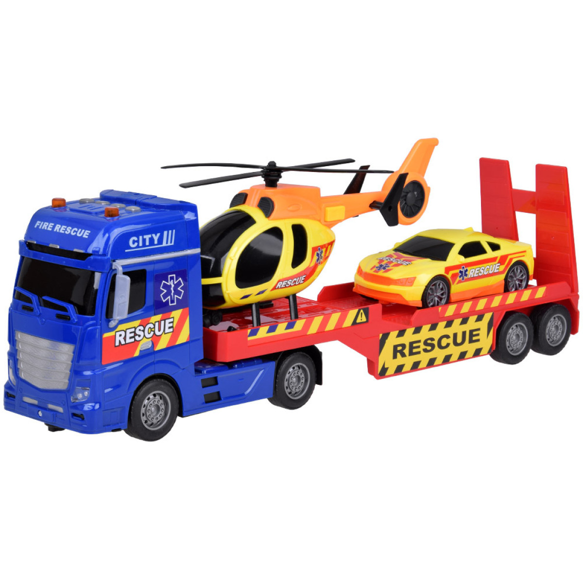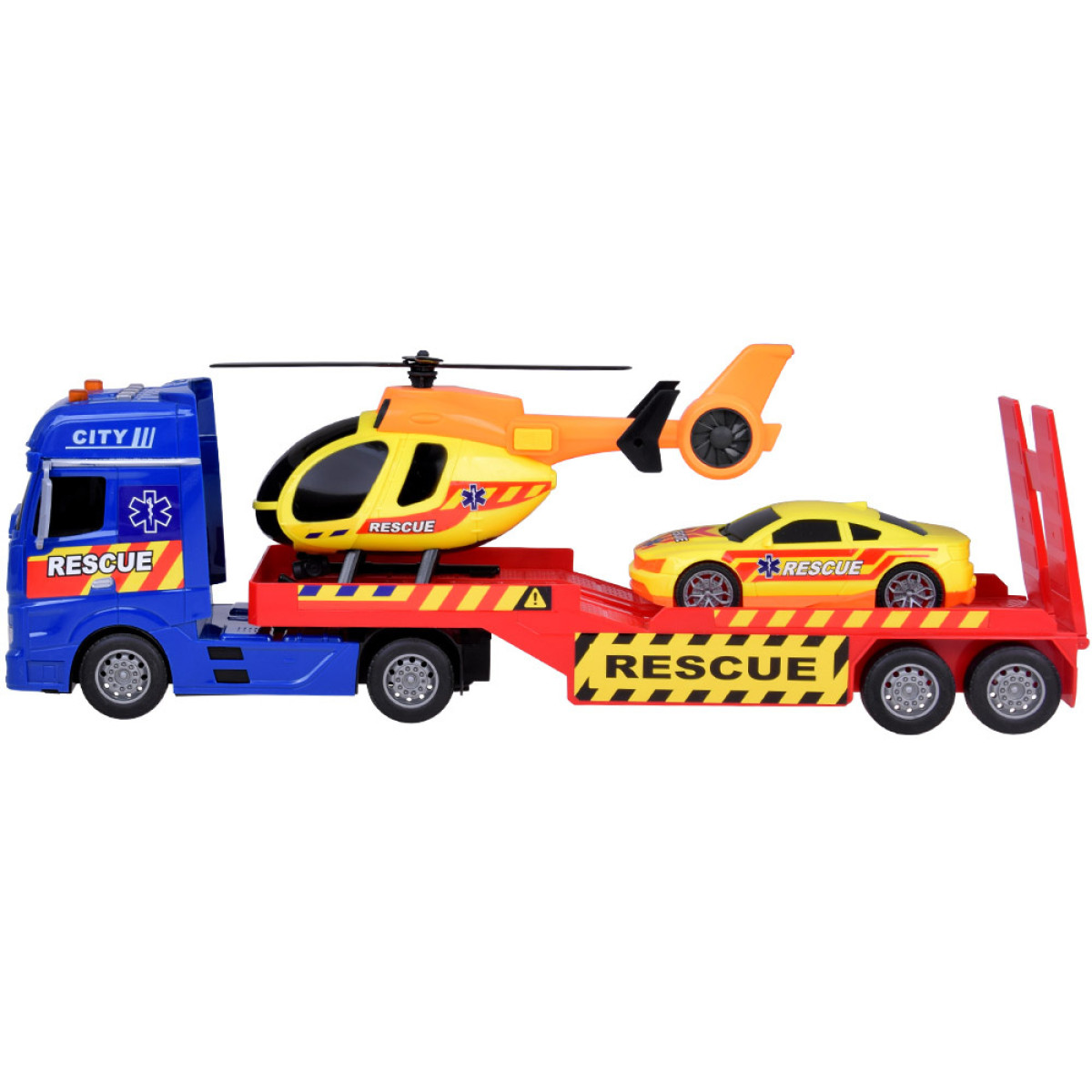 Šis rinkinys padeda vaikams pasinerti į gelbėjimo akcijų pasaulį. Žaiskite realistiškai su gelbėjimo transporto priemonėmis, tokiomis kaip sunkvežimis su priekaba, sraigtasparnis ir automobilis.