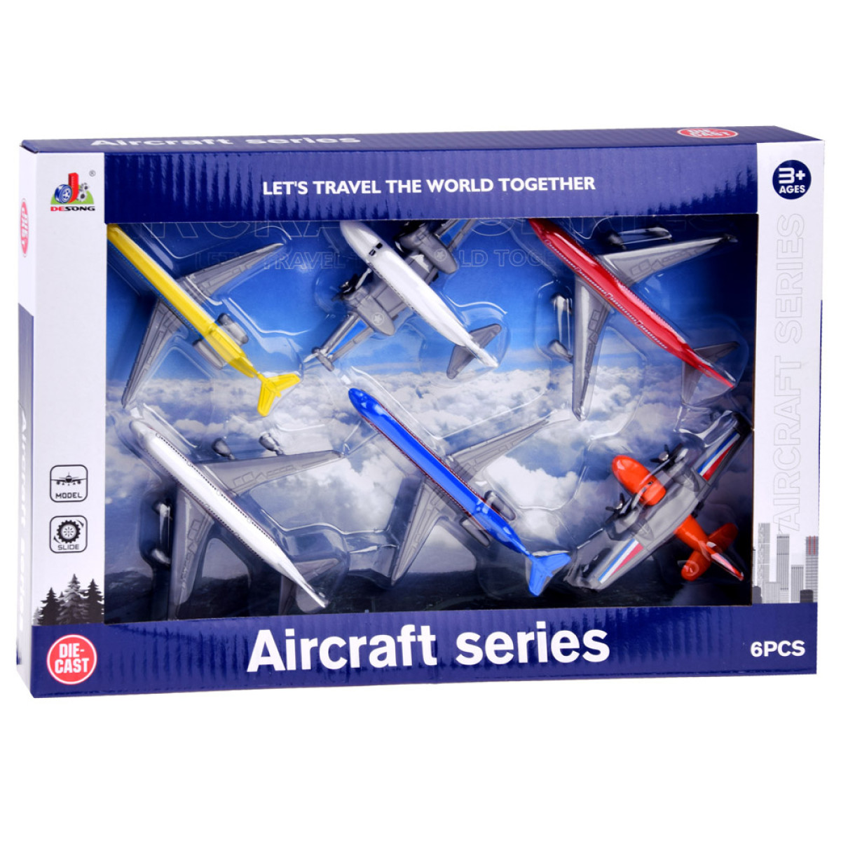 Šešių metalinių lėktuvų rinkinys yra skirtas vaikams nuo 3 metų amžiaus, suteikiantis daugybę linksmos veiklos kiekvienam mažajam pilotui.