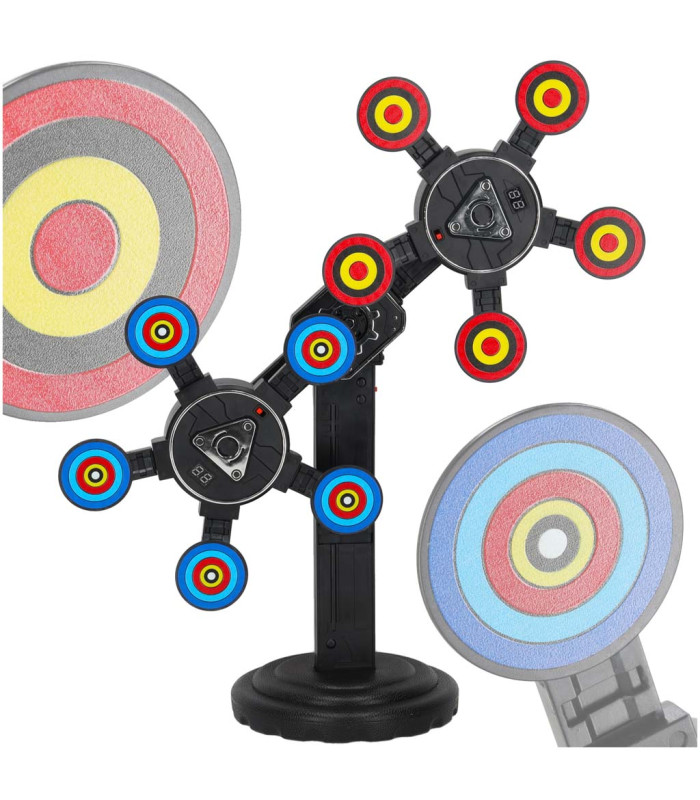 Judanti taikinys su baterijomis yra puikus papildymas rinkiniais su metančiais ir šaudančiais žaislais. Gali būti naudojamas kaip tikslas žaisliniams pistoletams su saugiais šoviniais, minkštais strėlėmis ir didelėmis kulkomis. Taikinio rankenos su penkiais tikslais sukasi aplink savo ašį. Jungikliai ON/OFF ant taikinio leidžia pritaikyti sunkumo lygį pagal žaidimo dalyvių poreikius.