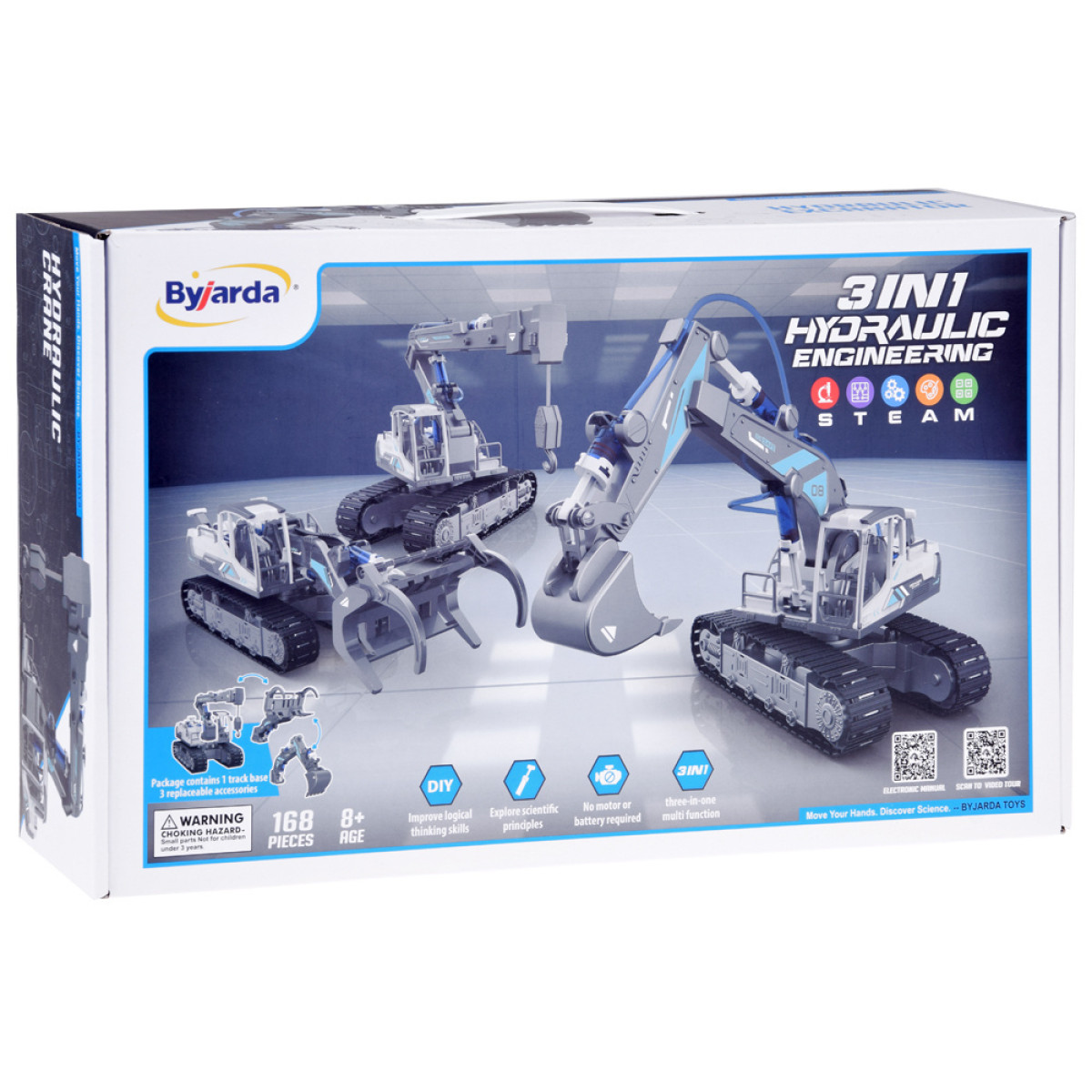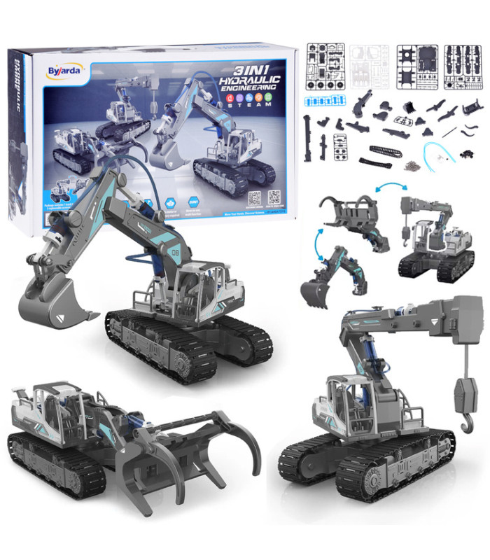 3 in 1 statybinių mašinų rinkinys su hidrauliniu valdymu yra skirtas vaikams nuo 8 metų. Tai neįtikėtinas konstruktorius, sukurtas specialiai jauniems mechanikos entuziastams.