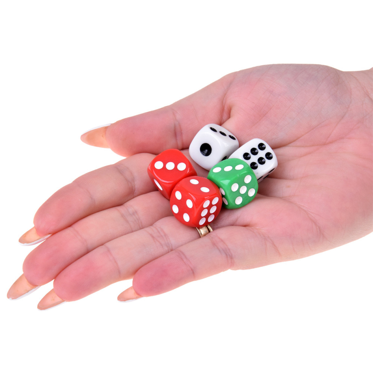 - 5 kauliukai su taškeliais,