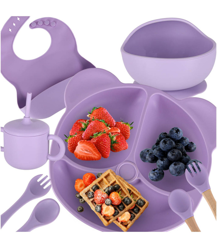 Silikoninių indų rinkinys vaikams - 8 dalių, violetinis