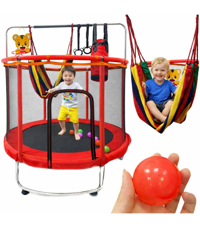 Vaikų sodo batutas su krepšinio tinkleliu ir priedais - 155 cm raudonas