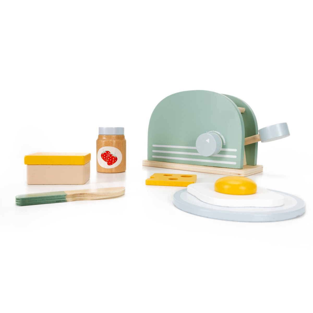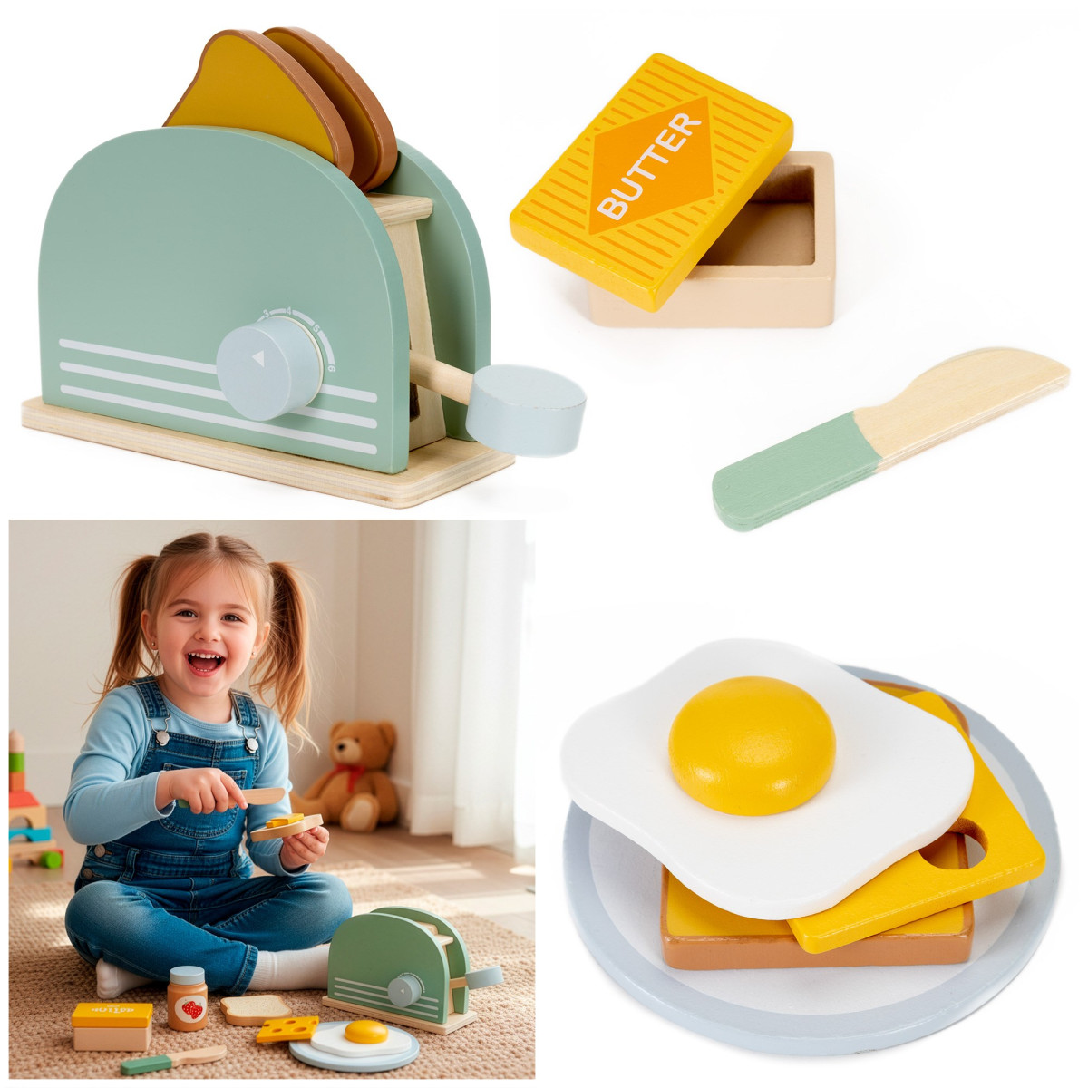 Springos KG0054 yra vaikiškas žaislas, imituojantis skrudintuvo ar sumuštinių gaminimo aparato veikimą, leidžiantis vaikams žaisti ir „gaminti“ įvairius pusryčių patiekalus žaidimo formatu. Žaislas skatina kūrybiškumą, motorikos vystymąsi ir gebėjimą imituoti kasdienes veiklas. Jis pagamintas iš natūralaus, kruopščiai apdoroto medžio, be žalingų medžiagų. Dėka daugybės interaktyvių elementų, vaikai gali derinti įvairias „maisto“ detales, pavyzdžiui, duoną, sūrį ar kiaušinius.
