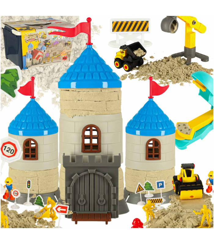 Kūrybinis smėlio rinkinys vaikams 1100g - pilis ir transporto priemonės
