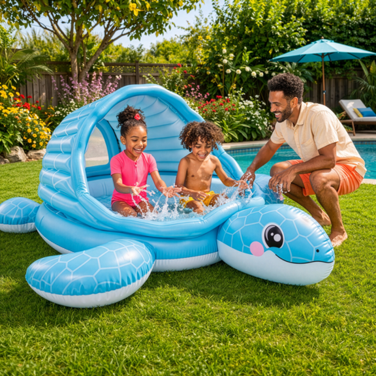 pripučiama vandens žaidimų aikštelė vaikams su vėžliuko forma ir stogeliu yra puikus pasirinkimas šiltoms vasaros dienoms. vaikai gali saugiai taškytis, žaisti ir leisti laiką lauke, o stogelis suteikia malonų pavėsį saulėtą dieną. minkštas dugnas padeda užtikrinti didesnį komfortą žaidžiant.