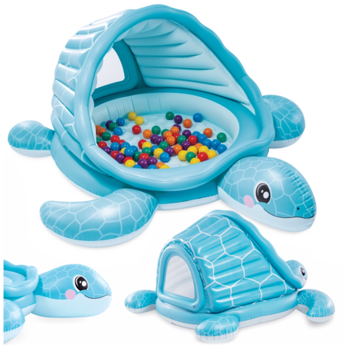 intex vėžliuko baseinas tinka ne tik vandens pramogoms. jį galima naudoti ir kaip sausą baseiną su kamuoliukais, todėl vaikas gali smagiai leisti laiką net ir tada, kai oras nėra tinkamas maudynėms.