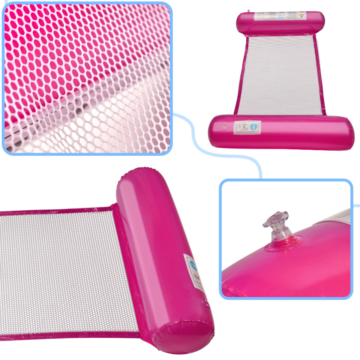 Dėl specialios šio pripučiamo gulto konstrukcijos kiekvienas buvimas vandenyje bus ypač atpalaiduojantis ir gaivinantis! Du pripučiami voleliai palaiko galvą ir kojas, o medžiaginis tinklas palaiko likusį kūną.
