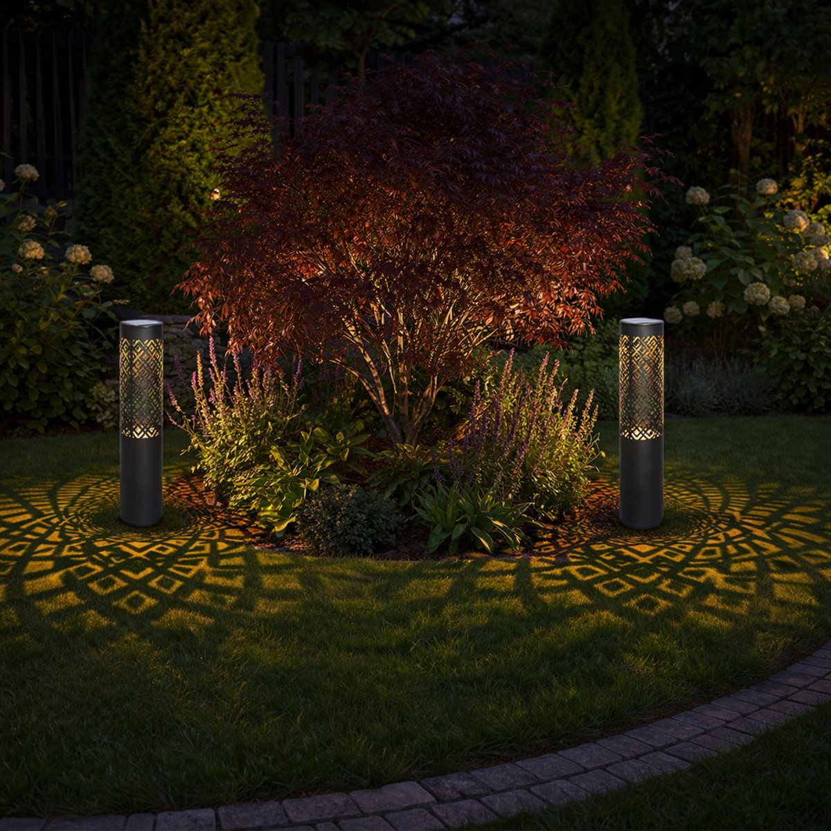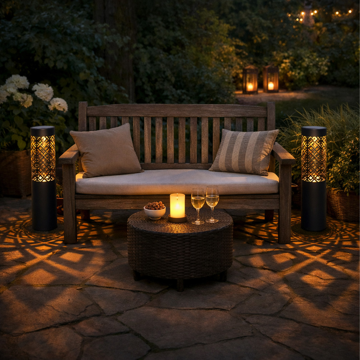 71 cm aukščio šviestuvai sukuria jaukią atmosferą ir suteikia aplinkai dekoratyvumo. Saulės energijos įkrovimas padeda taupyti elektrą, o paprastas montavimas leidžia greitai paruošti šviestuvus naudoti.