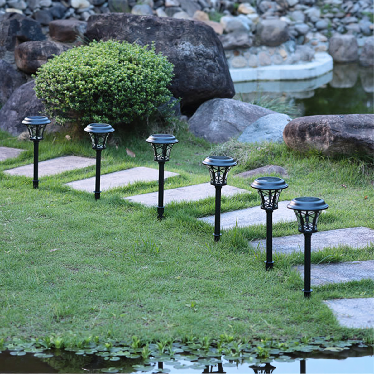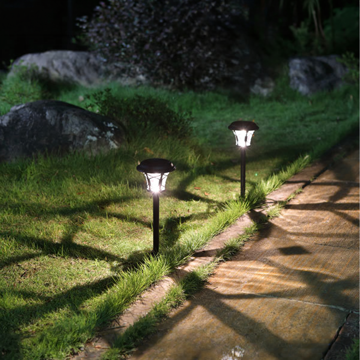 Praktiškas ir patogus sodo šviestuvų rinkinys, skirtas naudoti lauke. Šie saulės šviestuvai lengvai įsmeigiami į žemę, todėl puikiai tinka takeliams, kiemui, sodui, terasai ar gėlynui apšviesti.