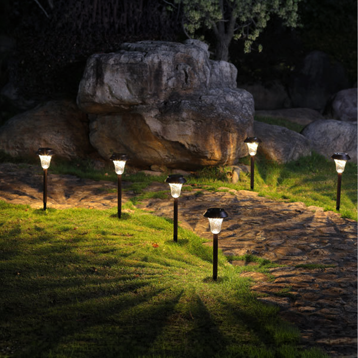 6 vnt. saulės energija įkraunamų sodo šviestuvų rinkinys