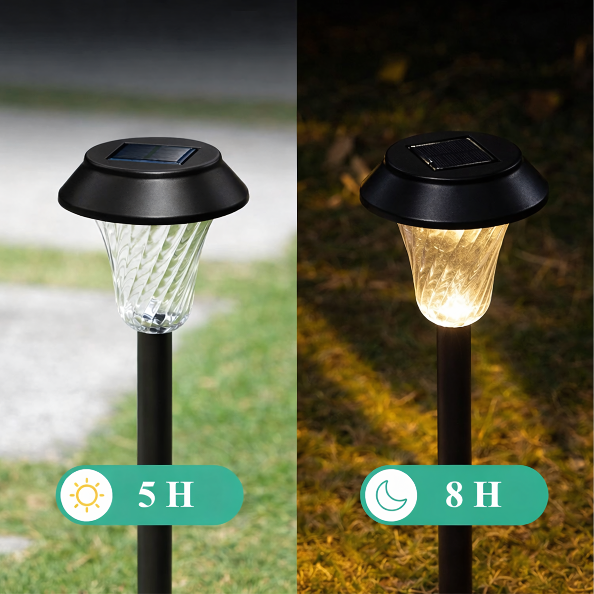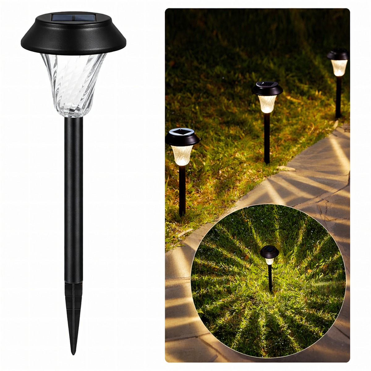 Praktiškas ir patogus sodo šviestuvų rinkinys, skirtas naudoti lauke. Šie saulės šviestuvai yra įsmeigiami, todėl juos lengva pastatyti sode, prie takelio, kieme ar terasoje. Atsparumas vandeniui padeda užtikrinti patikimą naudojimą įvairiomis oro sąlygomis, o 41 cm aukštis leidžia šviestuvams gerai matytis ir papuošti aplinką.