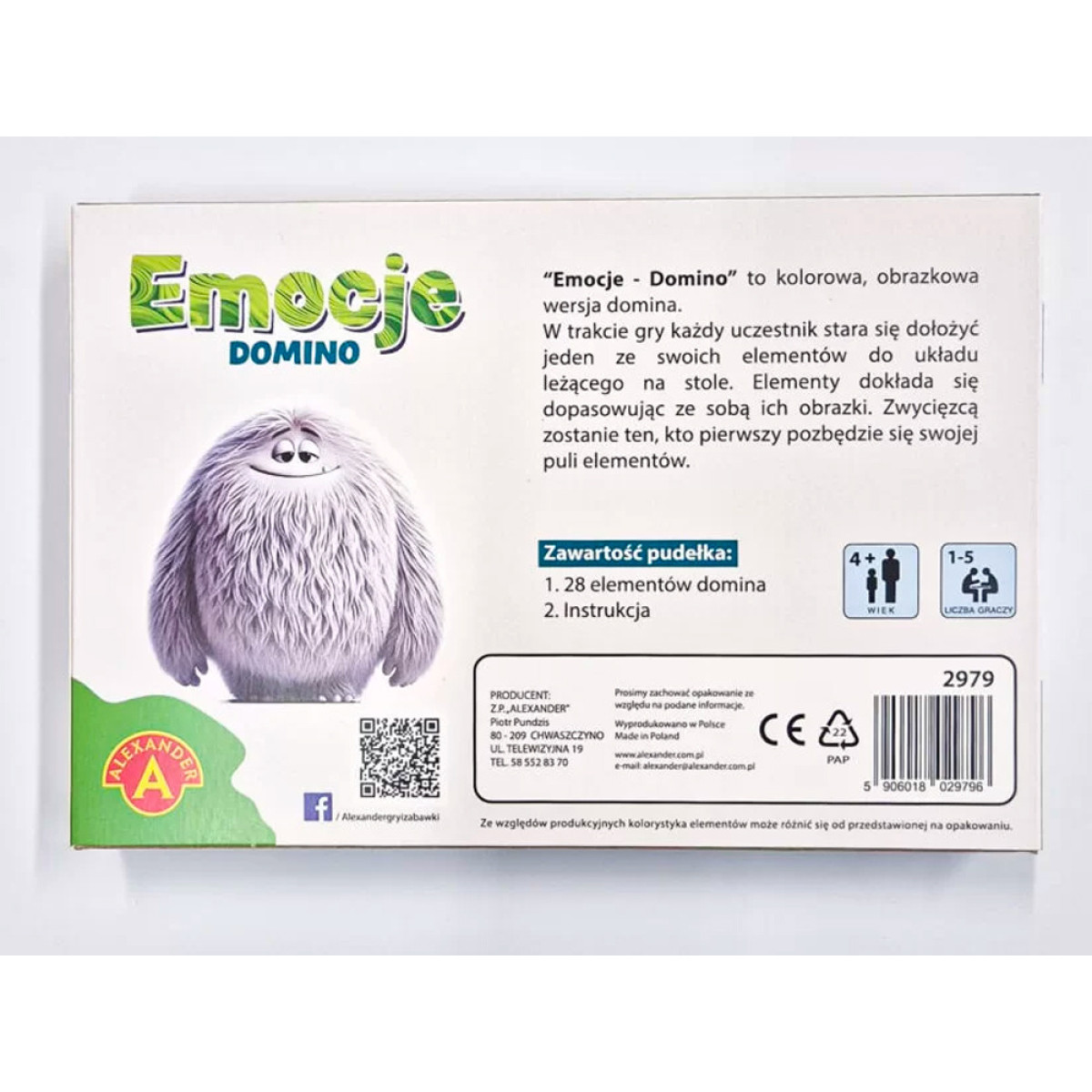 Domino Emocijos yra žaidimas, kuris natūraliai ir džiaugsmingai jungia pramogą su mokymusi. Jis remia vaiko emocinį vystymąsi, ugdo jo sąmoningumą ir moko, kad visi jausmai yra svarbūs ir turi savo vietą kasdieniame gyvenime.
