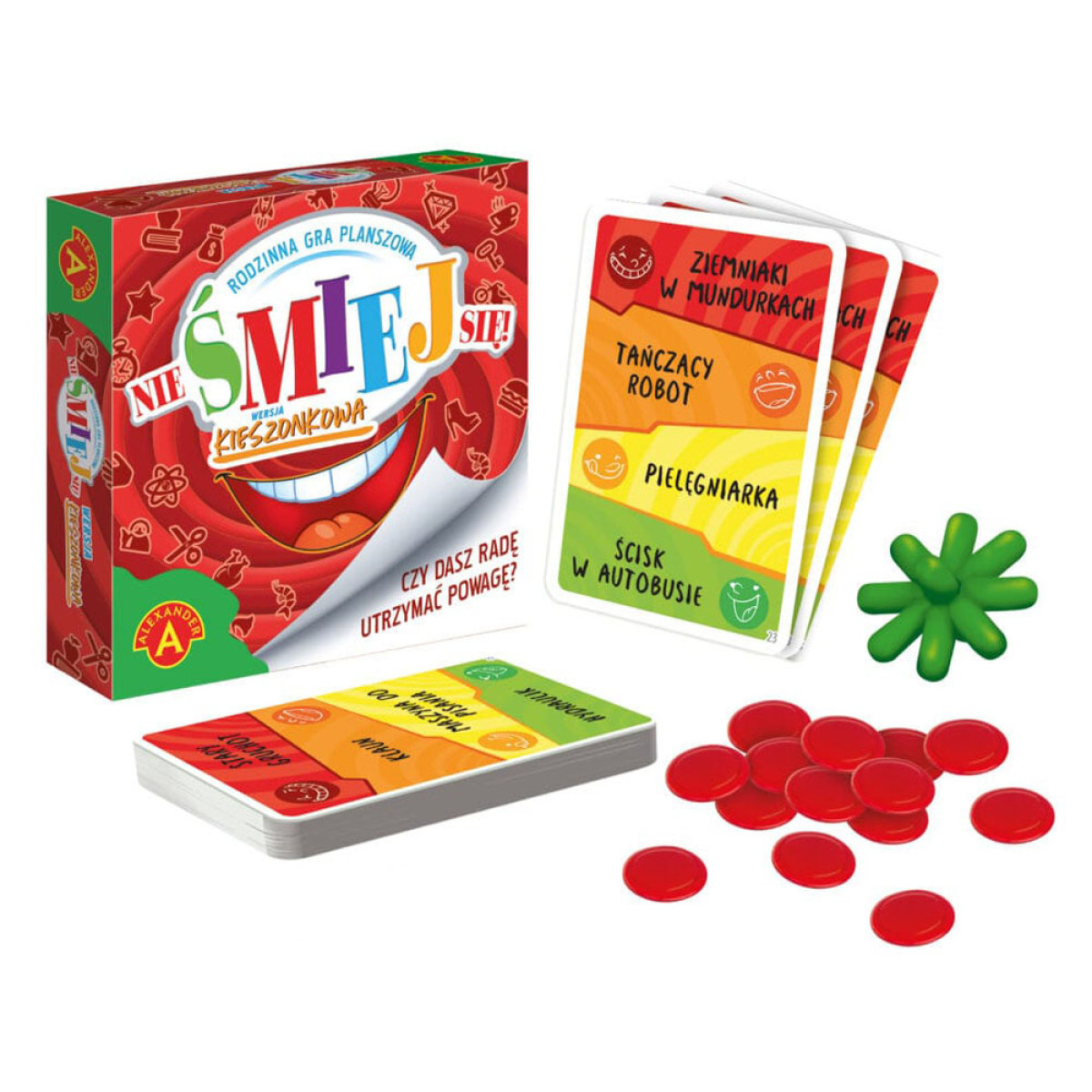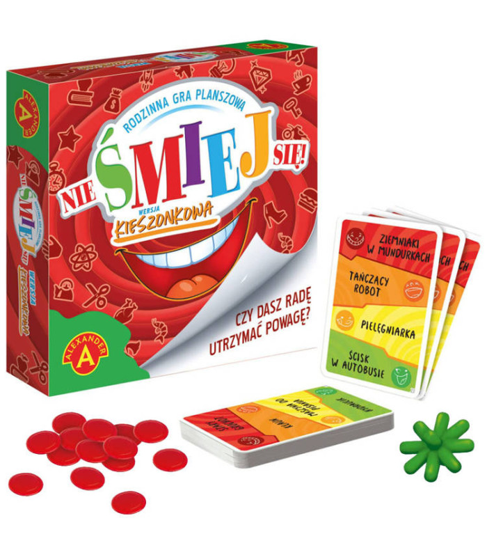 Žaidėjų skaičius nuo 2 iki 5 asmenų. „Nie Juoktis!“ yra draugiškas stalo žaidimas, kuriame nuolat pasigirsta juoko šūksniai. Problema ta, kad norint įgyti pranašumą prieš varžovus, reikia kuo ilgiau išlaikyti rimtumą. Tai klasikinė žaidimo versija, prieinama kiekvienam. Vienas efektyviausių būdų lavinti vaikų tarpasmeninius įgūdžius yra žaisti įvairius žaidimus su artimaisiais. Stalo, kortų ir kiti žaidimai ugdo intelektą, gebėjimą efektyviai išreikšti mintis ir perduoti savo ketinimus kitiems žmonėms. Žaidimai yra puikus būdas praleisti laiką su artimaisiais. Parduotuvė Jokomisiada siūlo platų stalo žaidimų, įgūdžių ir edukacinių žaidimų asortimentą.